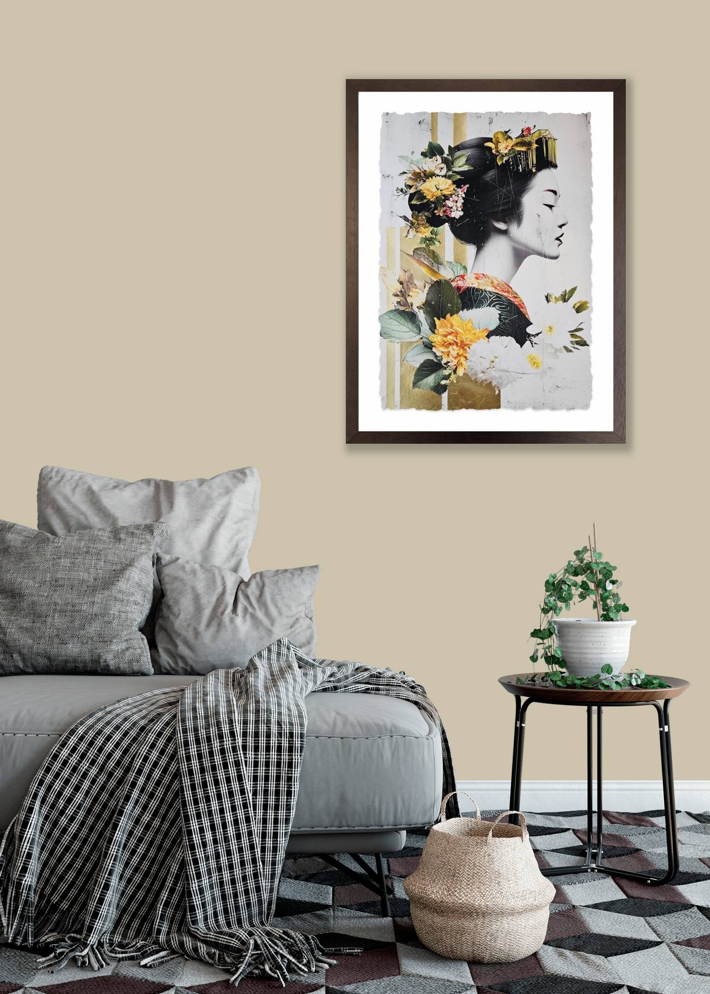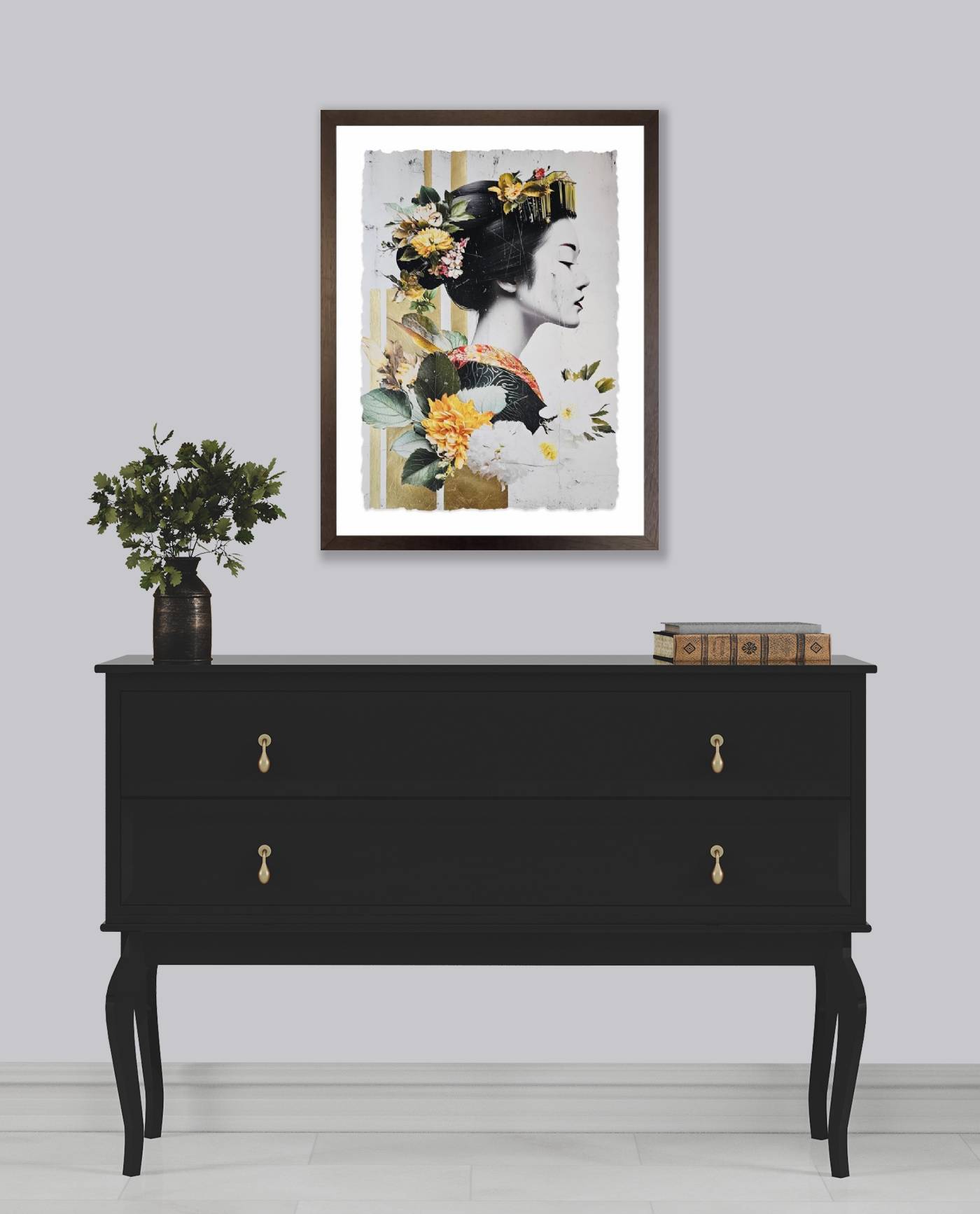 Elegant figurative studio edition on paper by the talented artist Chuck. 24ct gold leaf embellishments create a striking backdrop to this artwork. Presented in a stylish dark wood contemporary frame as shown and ready to hang.