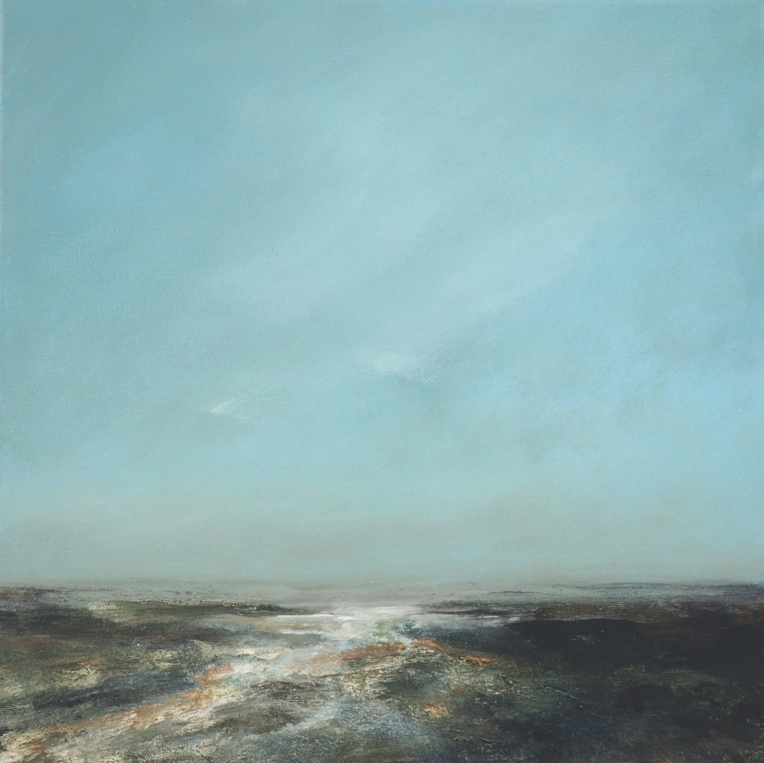 Atmospheric semi-abstract seascape by British artist Frank Lloyd. Presented in contemporary white frame as shown and ready to hang.