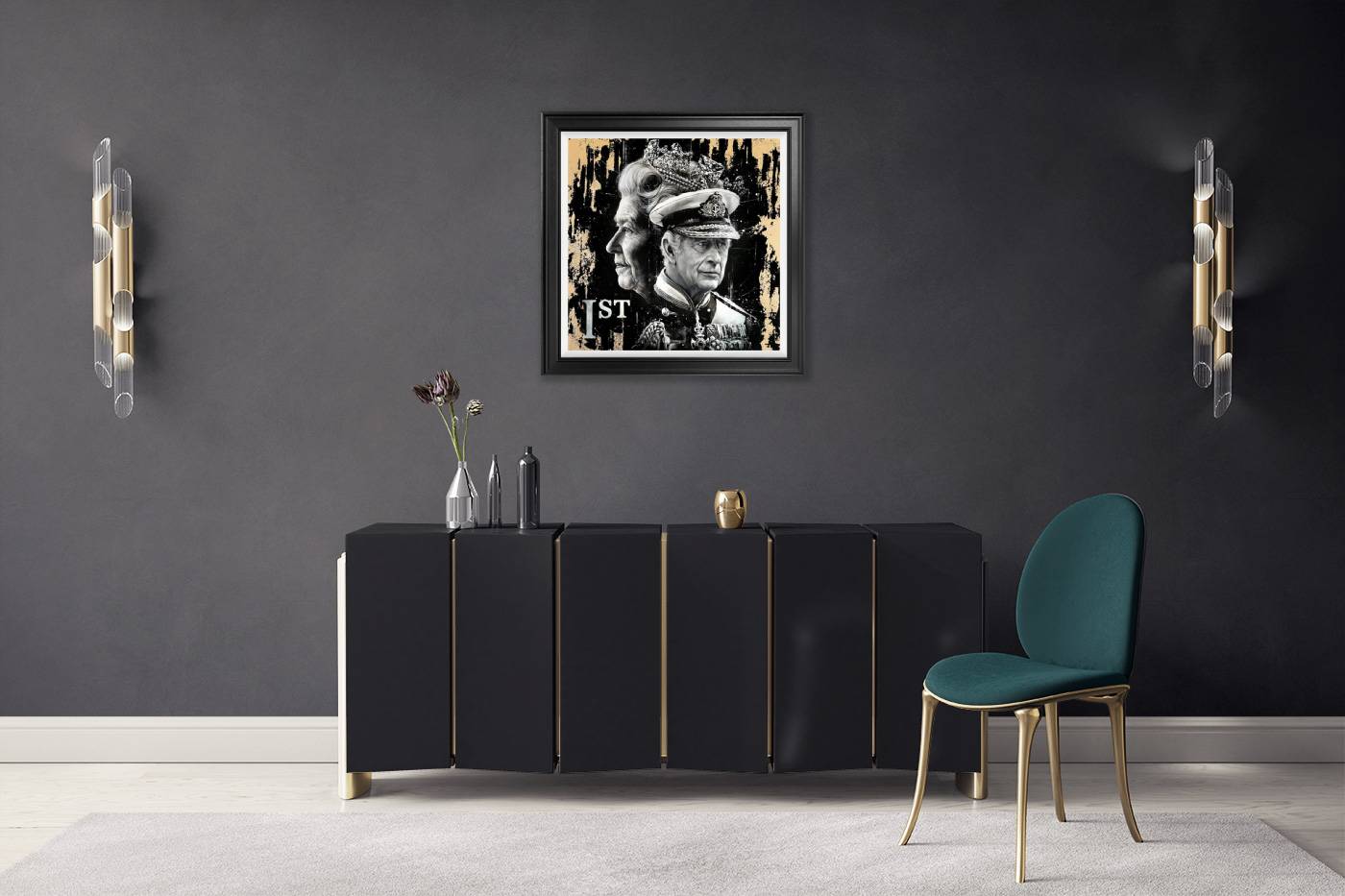 Stunning limited edition portrait print on canvas with an edition size of 75. The artwork is hand embellished with 24ct gold leaf and is presented framed in a slim white slip and black frame as shown. Original artworks by Ben Jeffrey are also available – please contact Forest Gallery for further information.