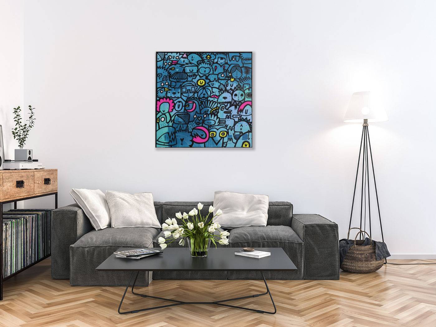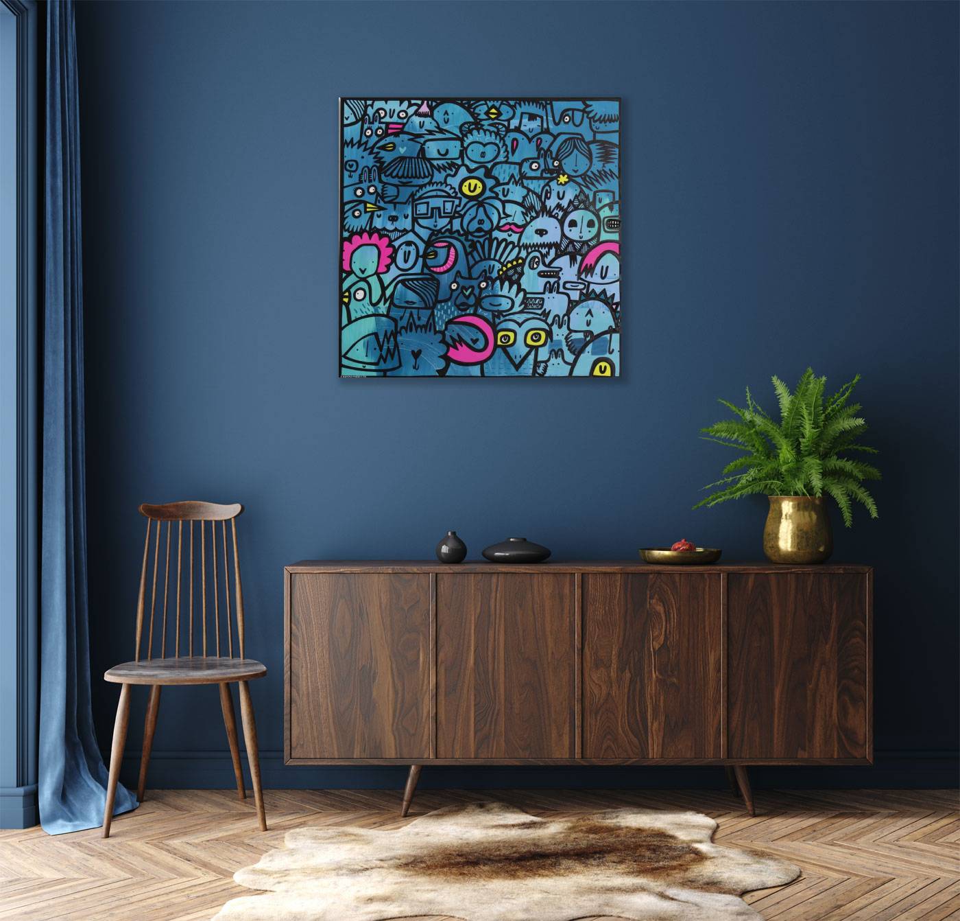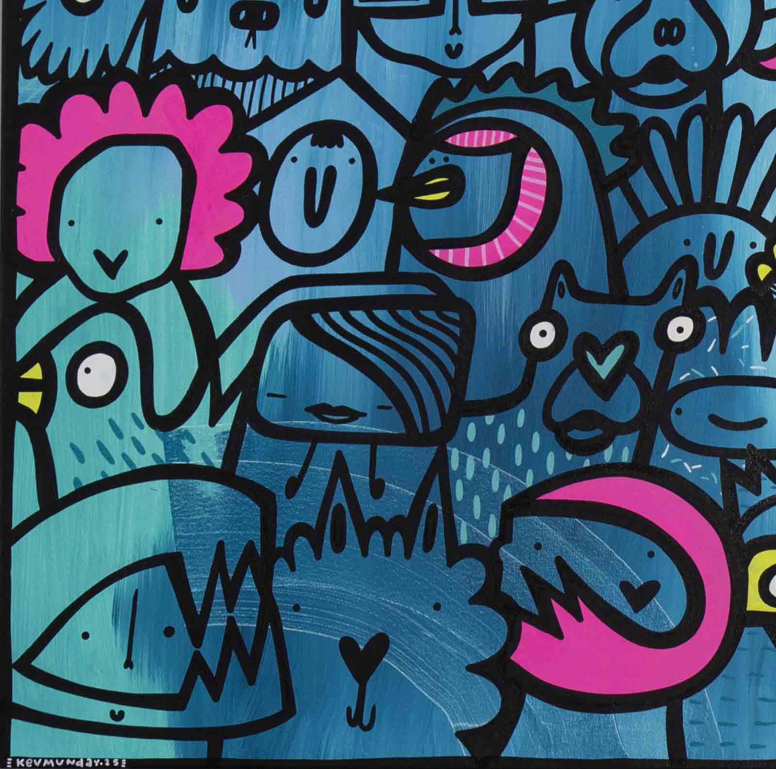 Fun filled artwork with accents of colour by internationally acclaimed artist Kev Munday. The canvas is ready to be displayed unframed or for framing options please get in touch with us.