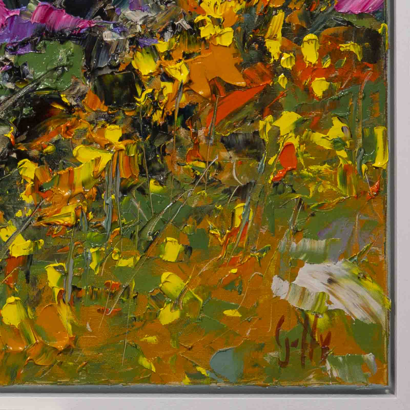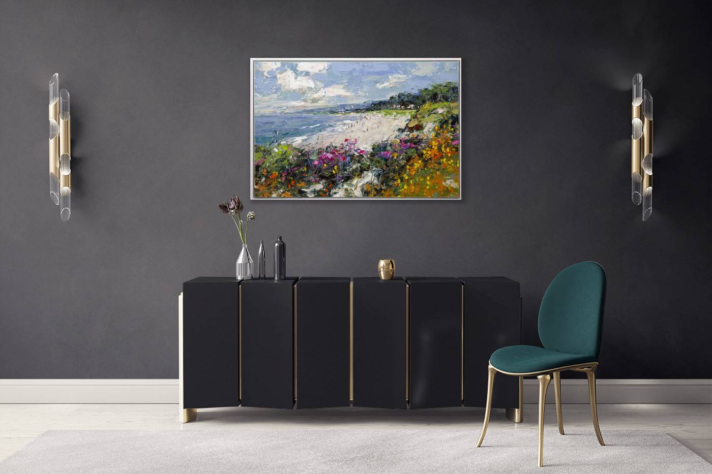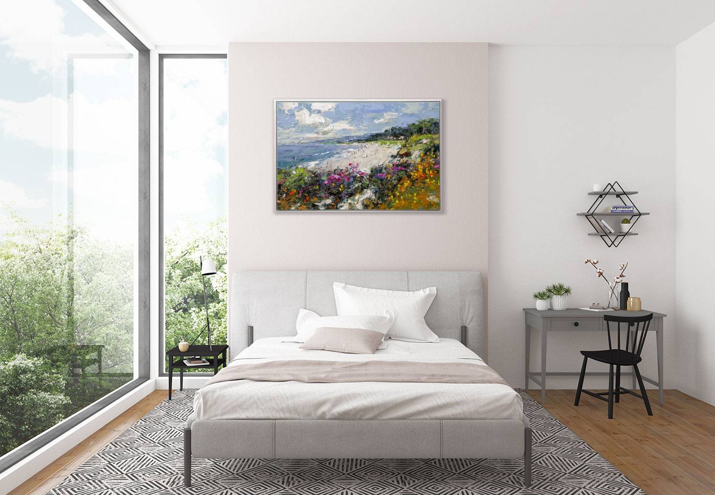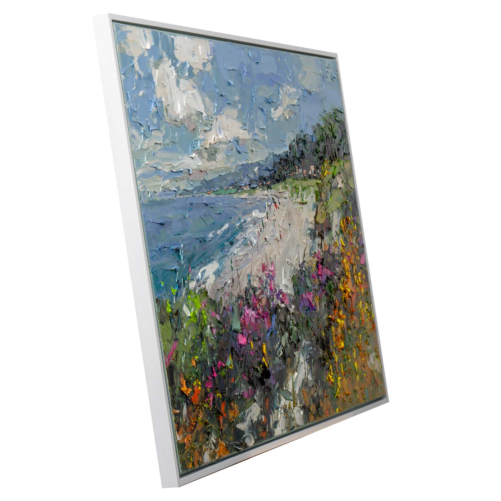 Bay Of Beauty, an original painting masterfully captured in Frank Getty’s beautiful palette knife painting style. Presented in a contemporary white floating frame as shown and ready to hang.