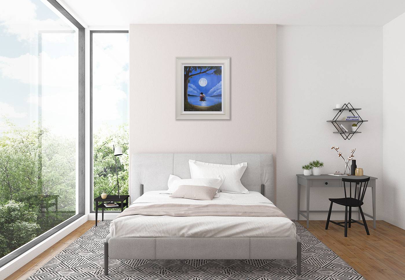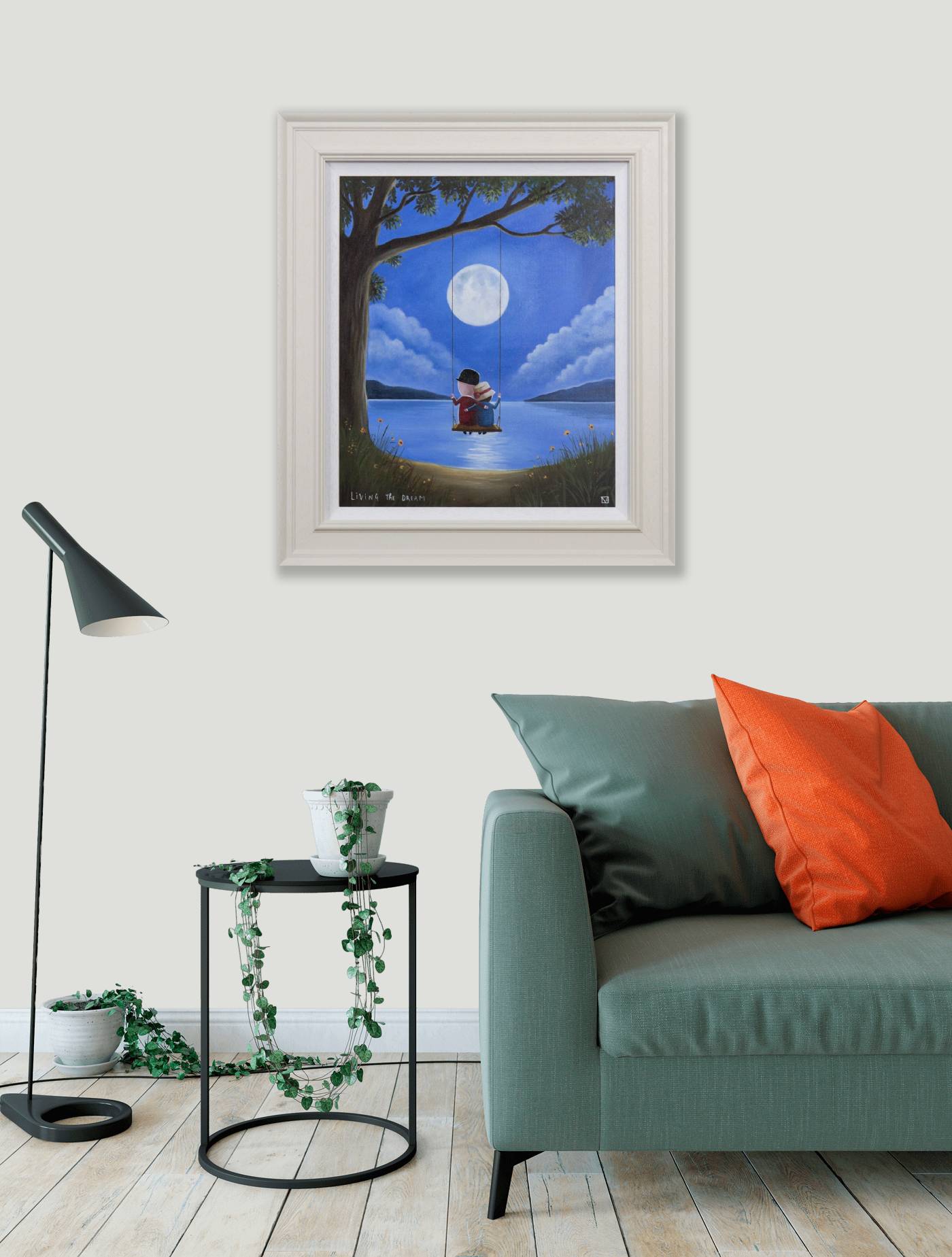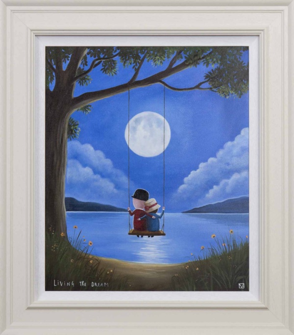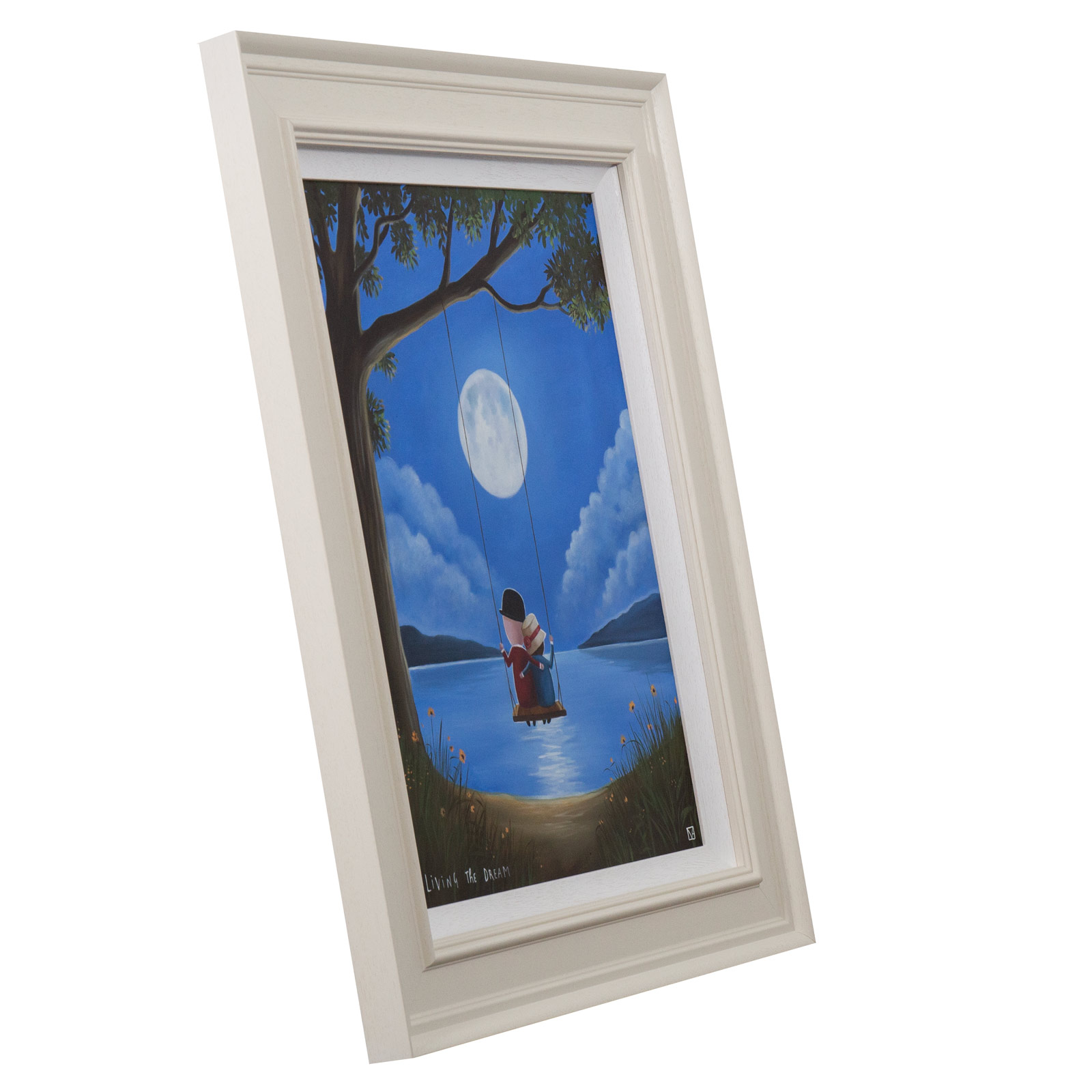 Romantic original oil painting by the popular artist Michael Abrams. Presented in a painted finish neutral tone frame as shown and ready to hang on the wall