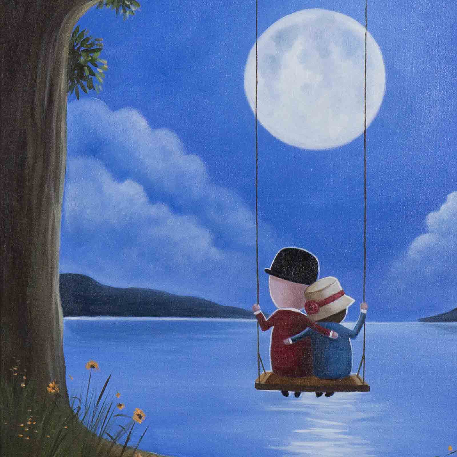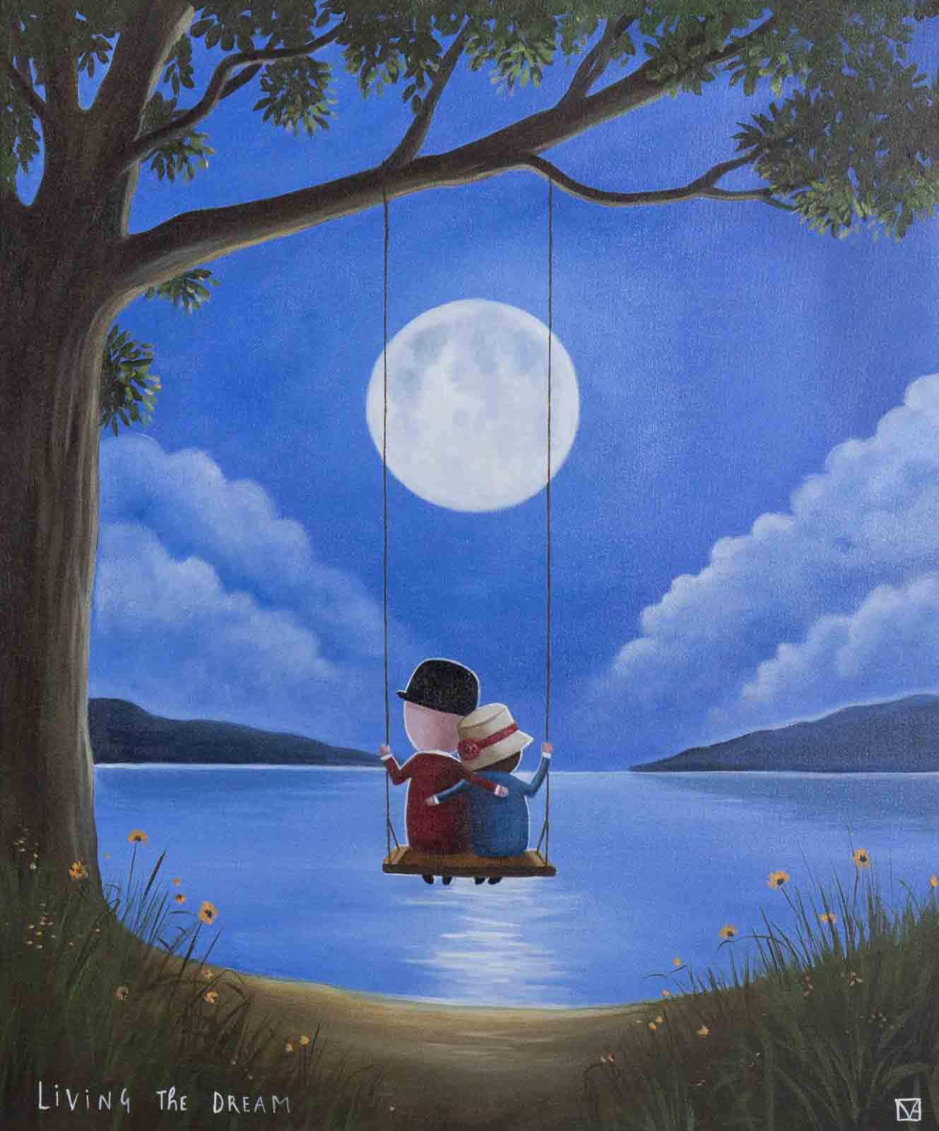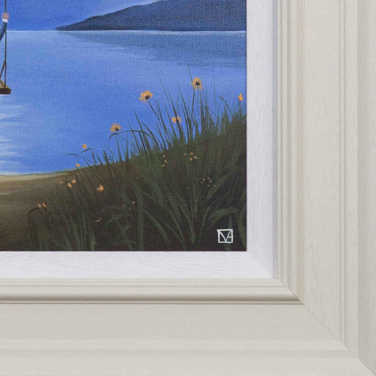 Romantic original oil painting by the popular artist Michael Abrams. Presented in a painted finish neutral tone frame as shown and ready to hang on the wall
