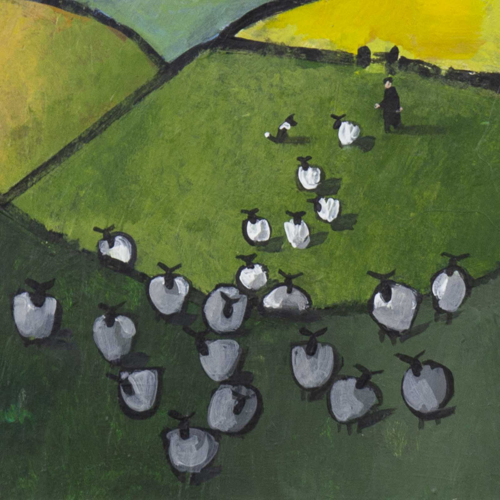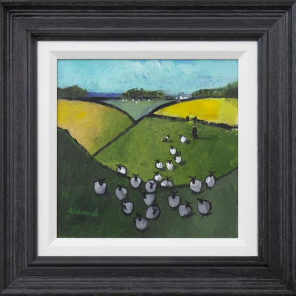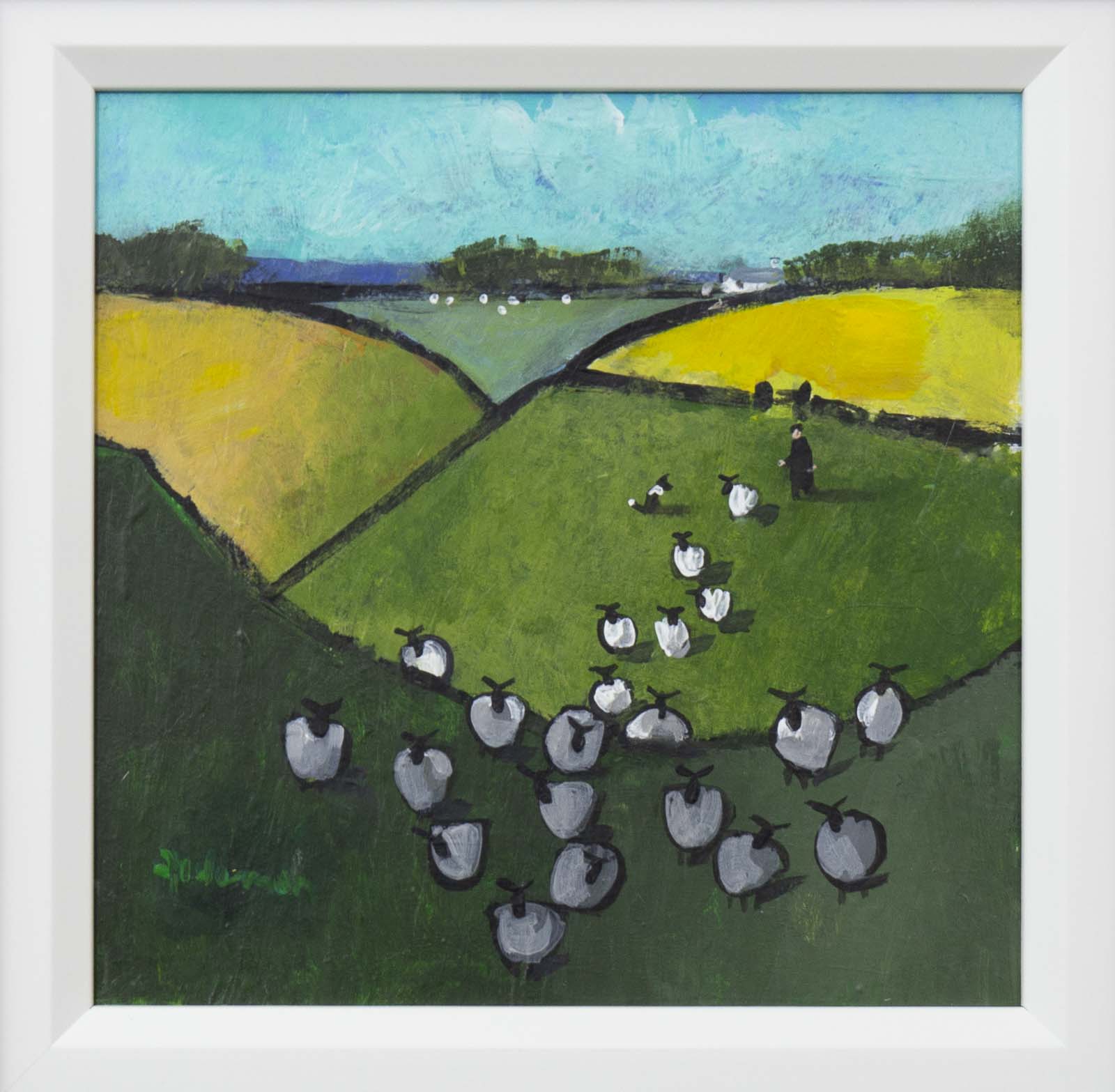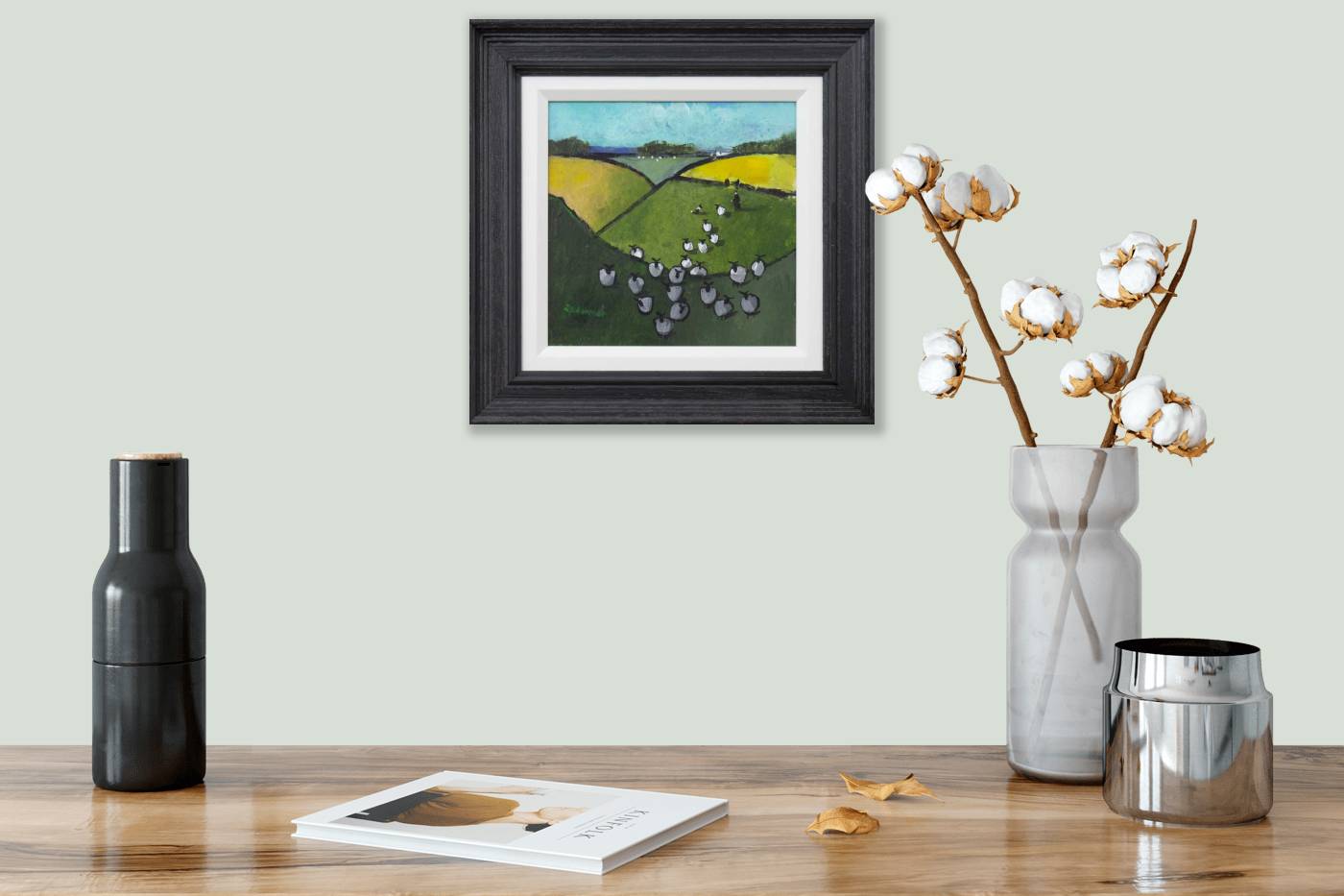 A colourful original painting by British artist David Alderman as part of the artist’s ‘sheepscape’ series. Framed as pictured and ready to hang.
