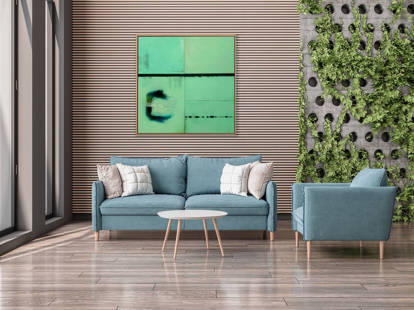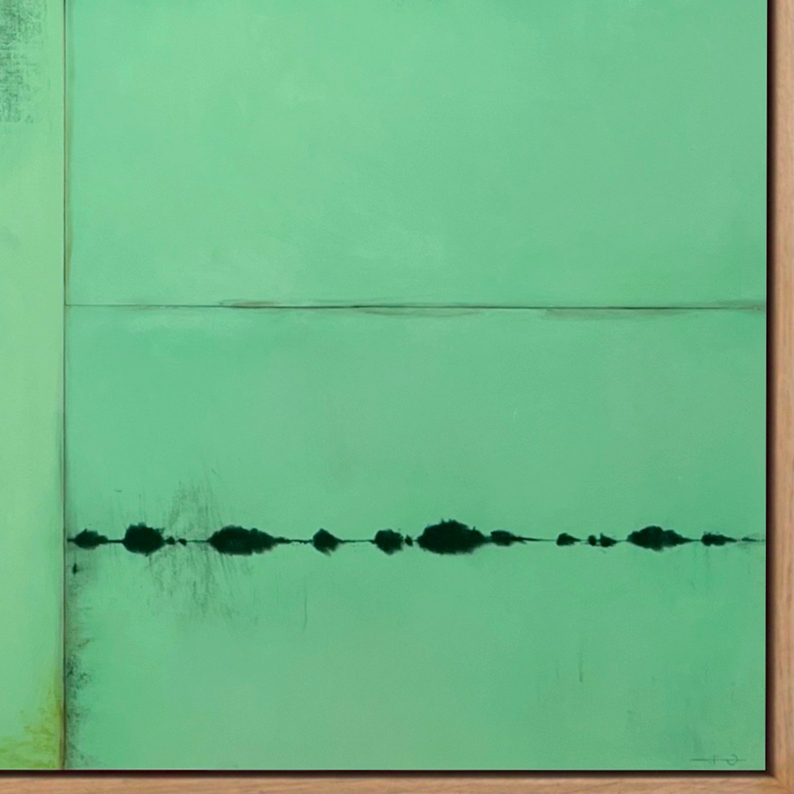 Thought provoking abstract artwork by Spanish artist De Tomàs forming part of his debut collection with Forest Gallery titled ‘Aurora’. Created on multiple wooden panels combined and joined to form one harmonised piece. Presented in a stylish contemporary oak frame as shown and ready to hang.