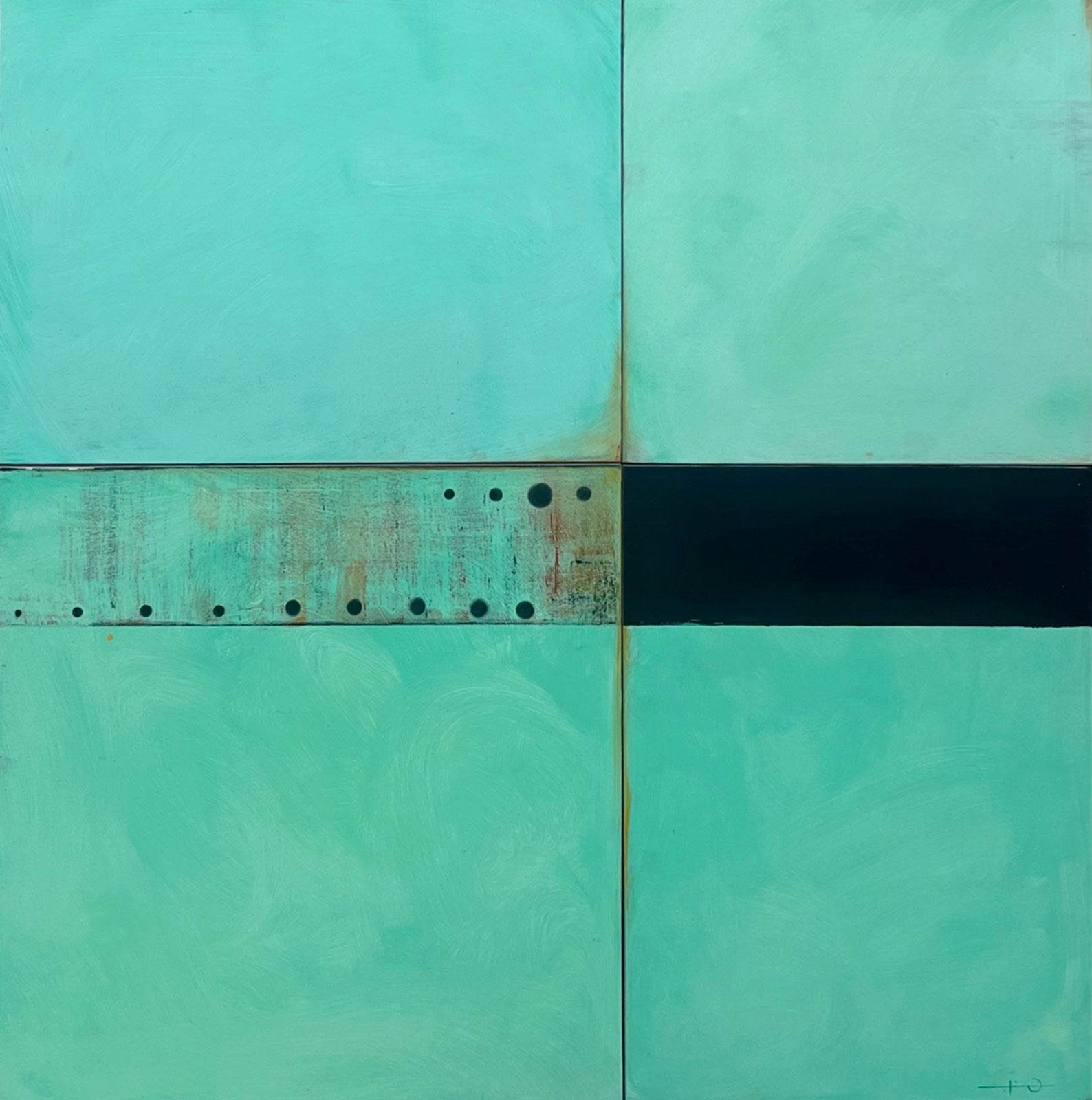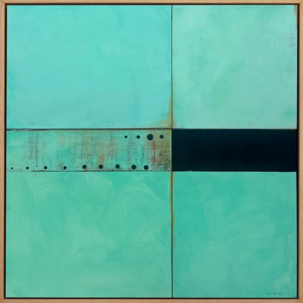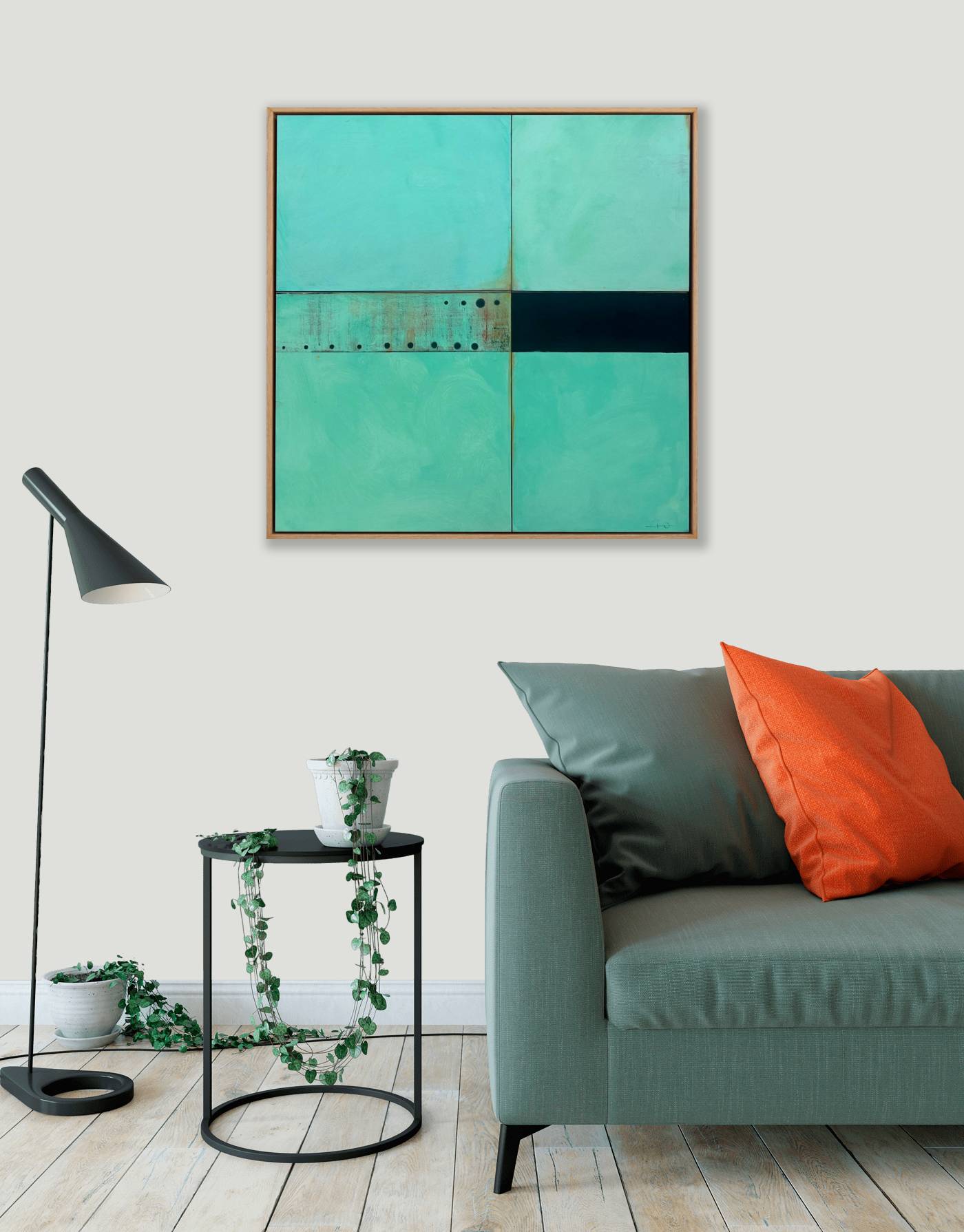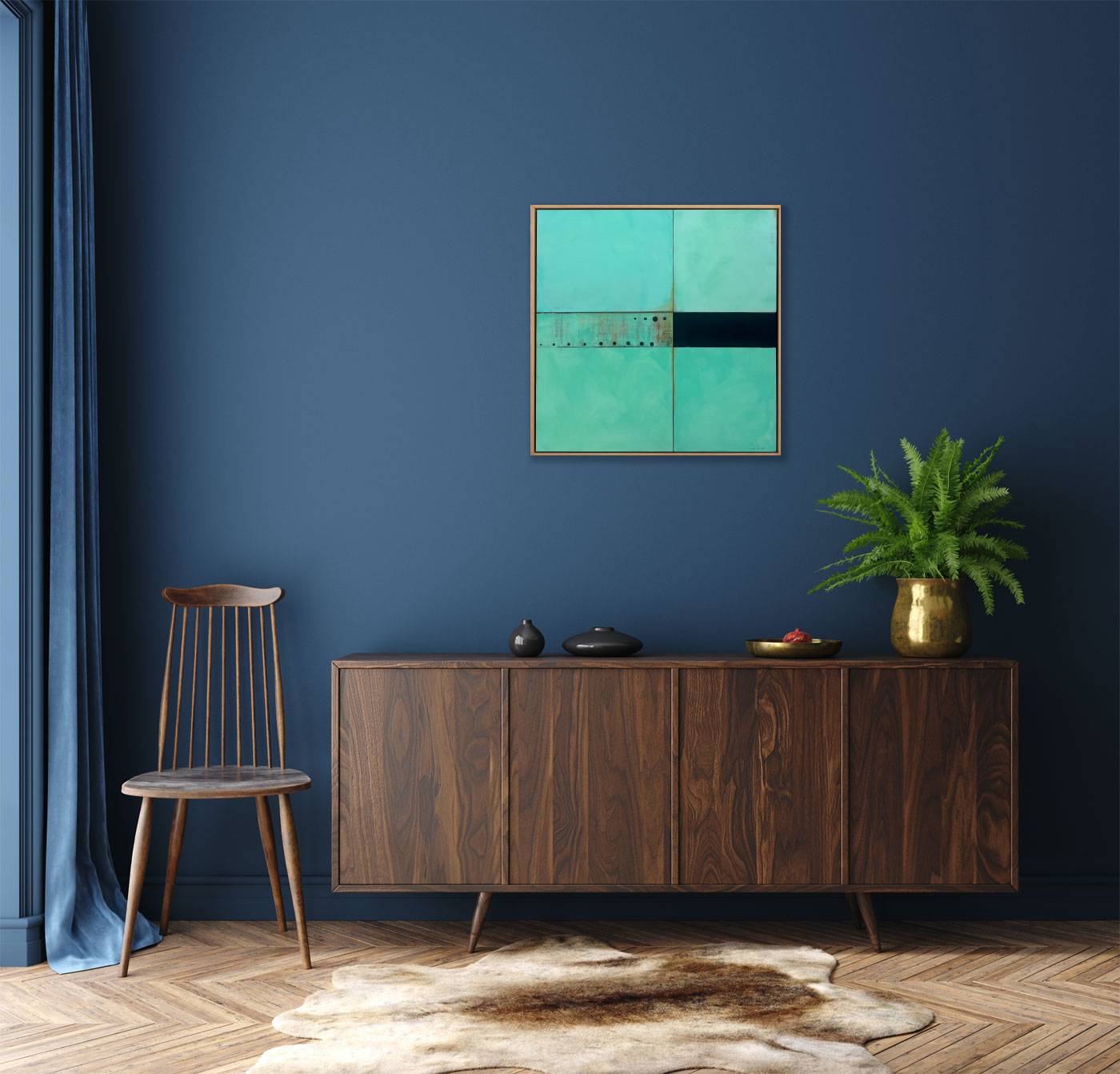 Thought provoking abstract artwork by Spanish artist De Tomàs forming part of his debut collection with Forest Gallery titled ‘Aurora’. Created on multiple wooden panels combined and joined to form one harmonised piece. Presented in a stylish contemporary oak frame as shown and ready to hang.