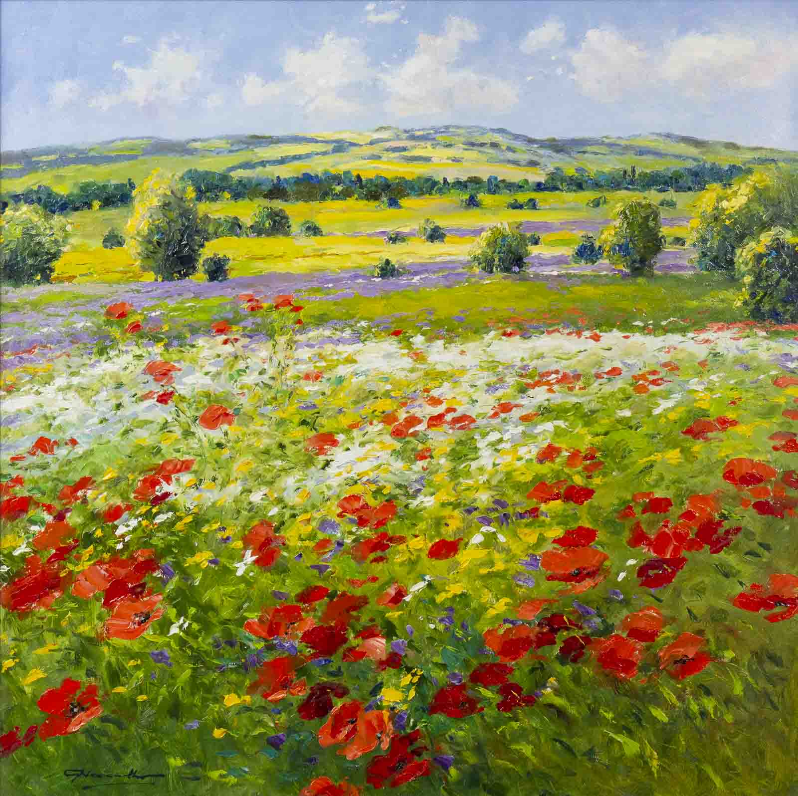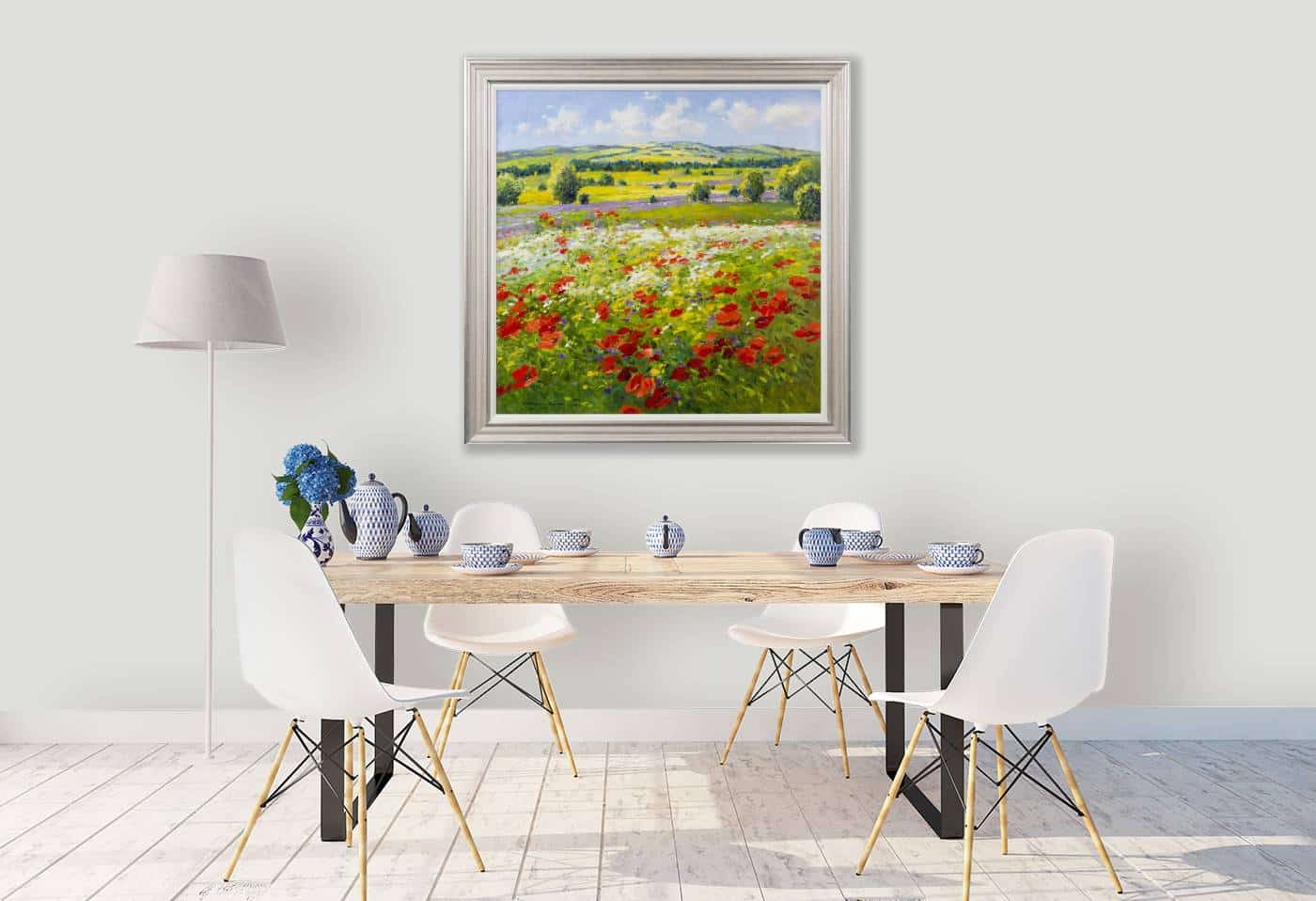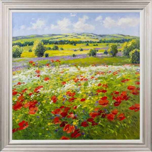 A beautiful summery statement painting by the talented artist Gerhard Nesvadba. Presented in silver/cream moulding with white slip as shown and ready to hang.
