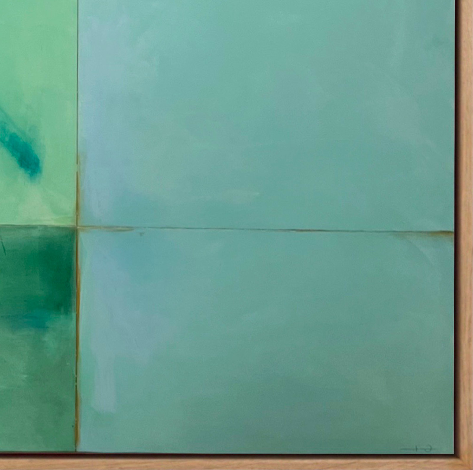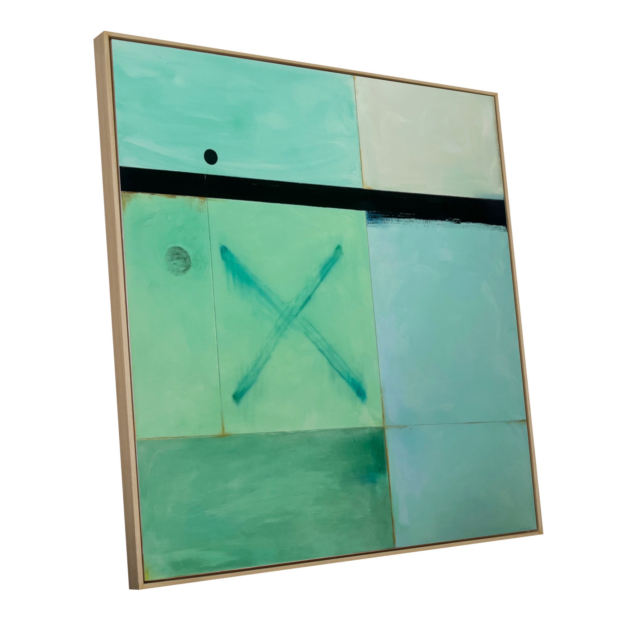 Thought provoking abstract artwork by Spanish artist De Tomàs forming part of his debut collection with Forest Gallery titled ‘Aurora’. Created on multiple wooden panels combined and joined to form one harmonised piece. Presented in a stylish contemporary oak frame as shown and ready to hang.