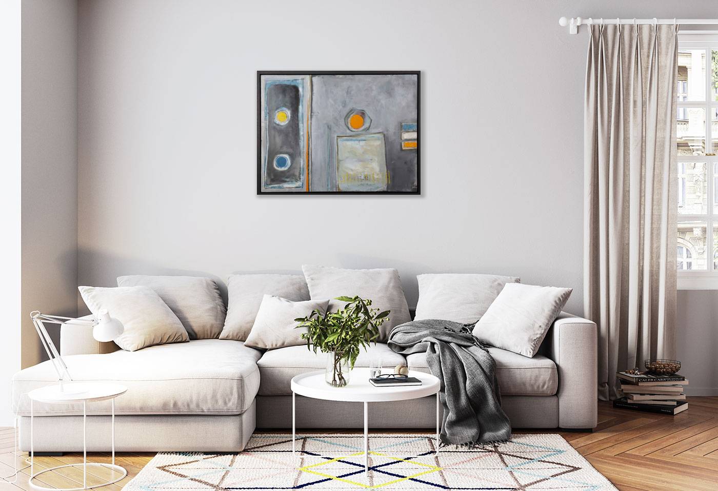 Mixed media abstract painting by Norwegian artist Håven. Presented in a contemporary black frame and ready to hang.