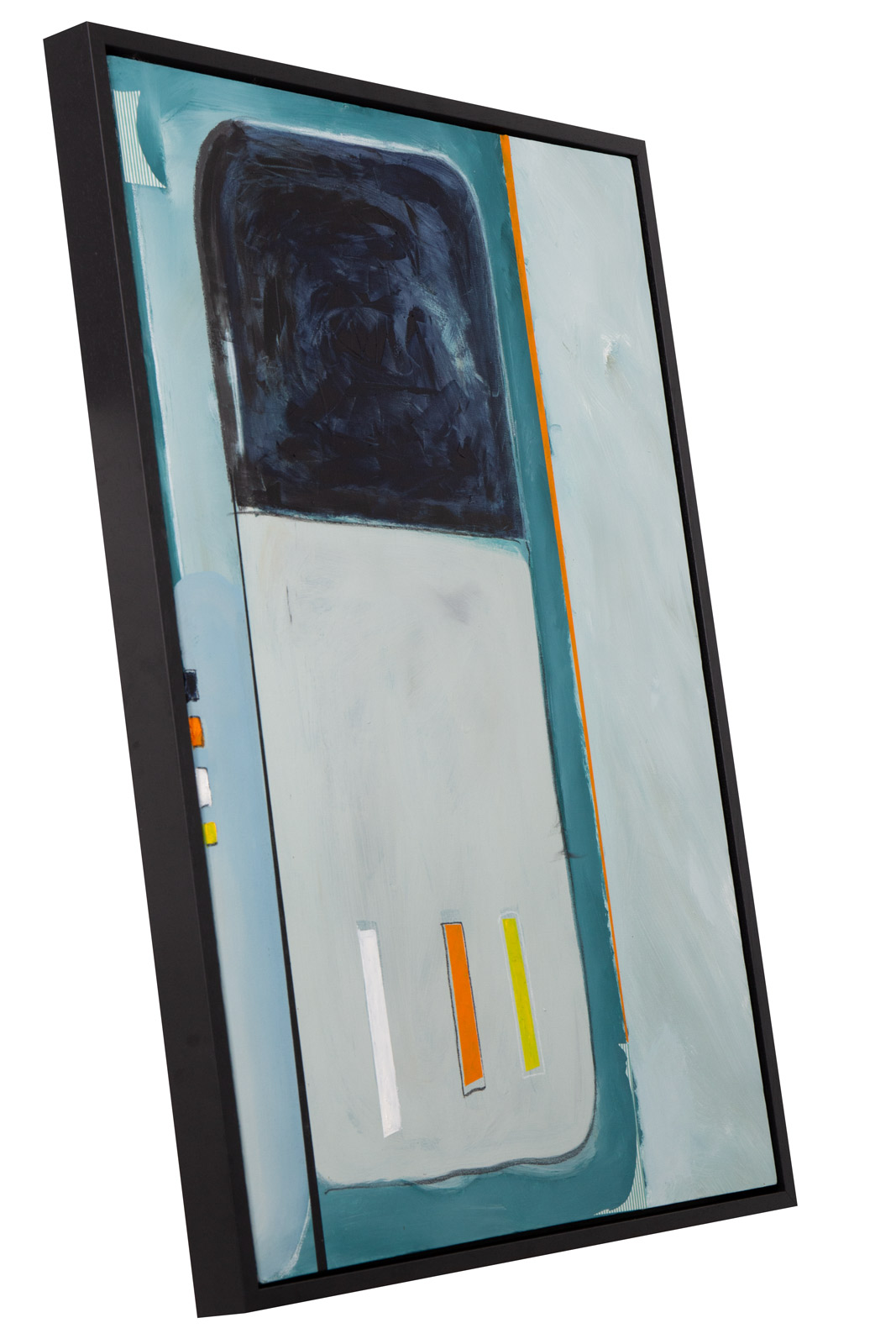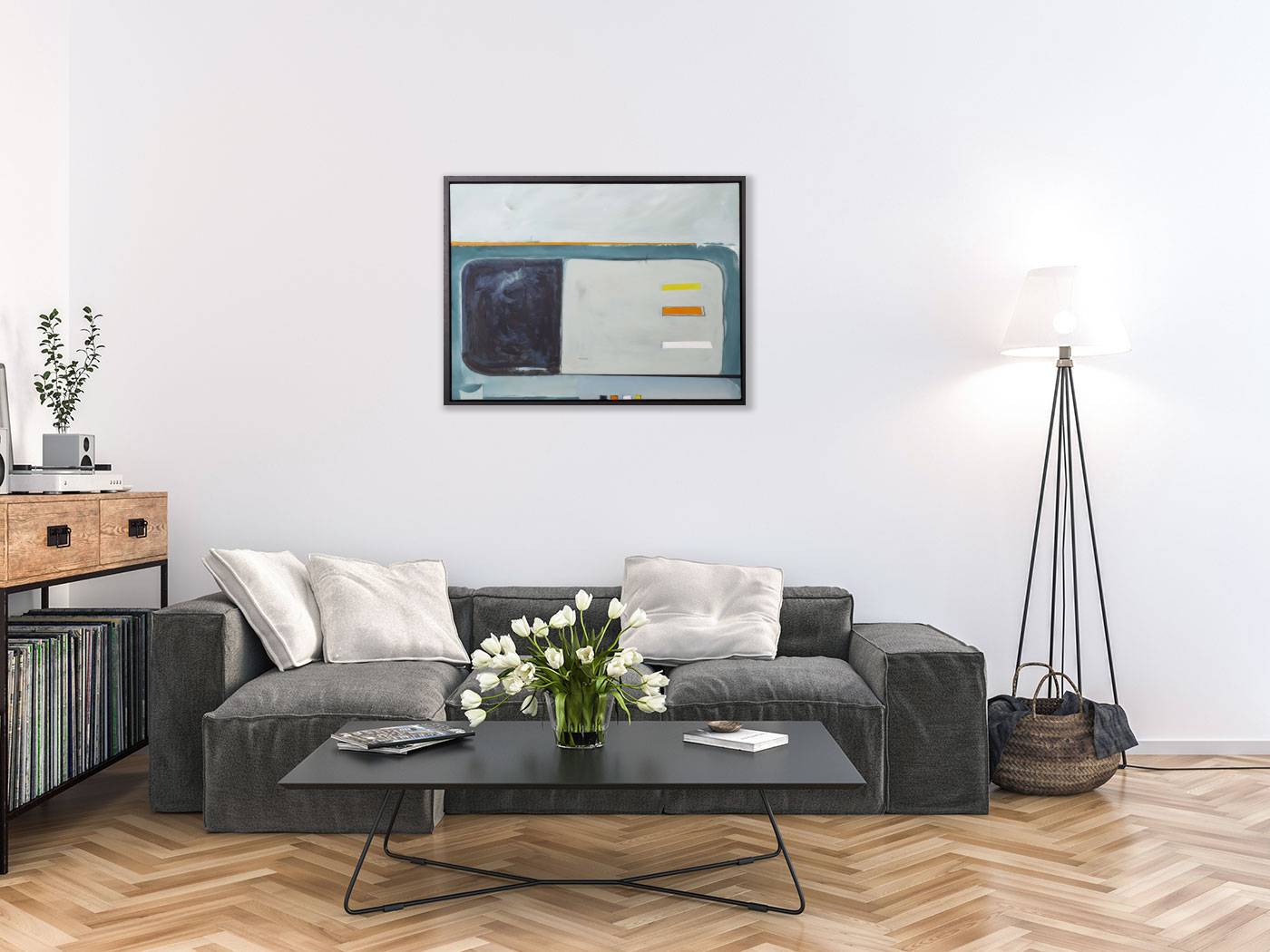 Mixed media abstract painting by Norwegian artist Håven. Presented in a contemporary black frame and ready to hang.