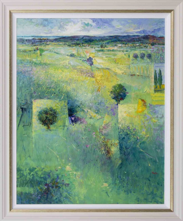 Stunning original oil painting by Italian artist Mario Malfer inspired by the Tuscan hills and surrounding countryside. Presented in a painted frame with golden trim and white slip as shown and ready to hang.