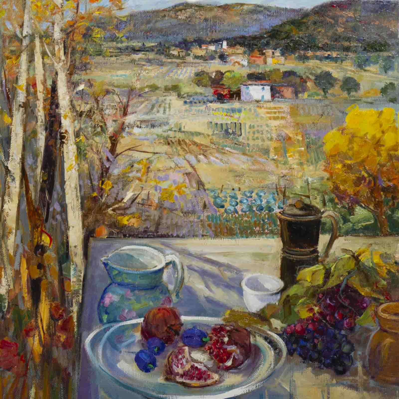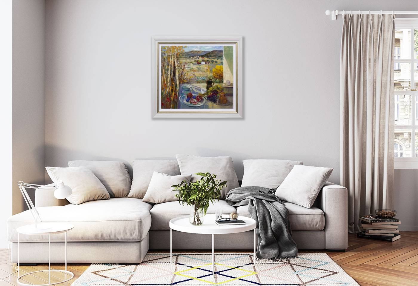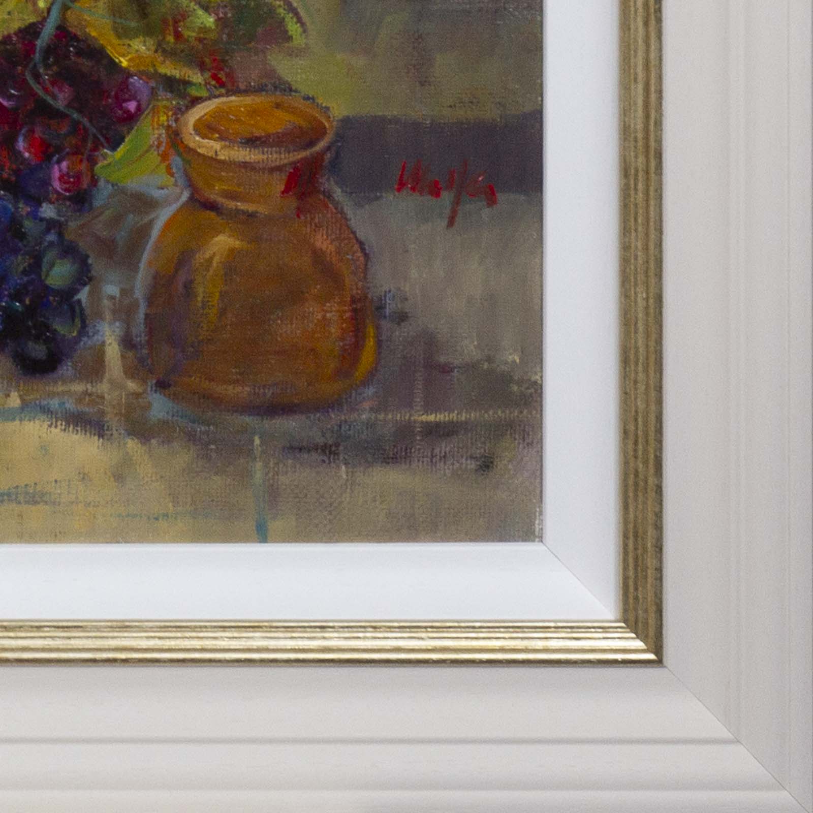 Stunning original oil painting by Italian artist Mario Malfer inspired by the Tuscan hills and surrounding countryside. Presented in a painted frame with golden trim and white slip as shown and ready to hang.