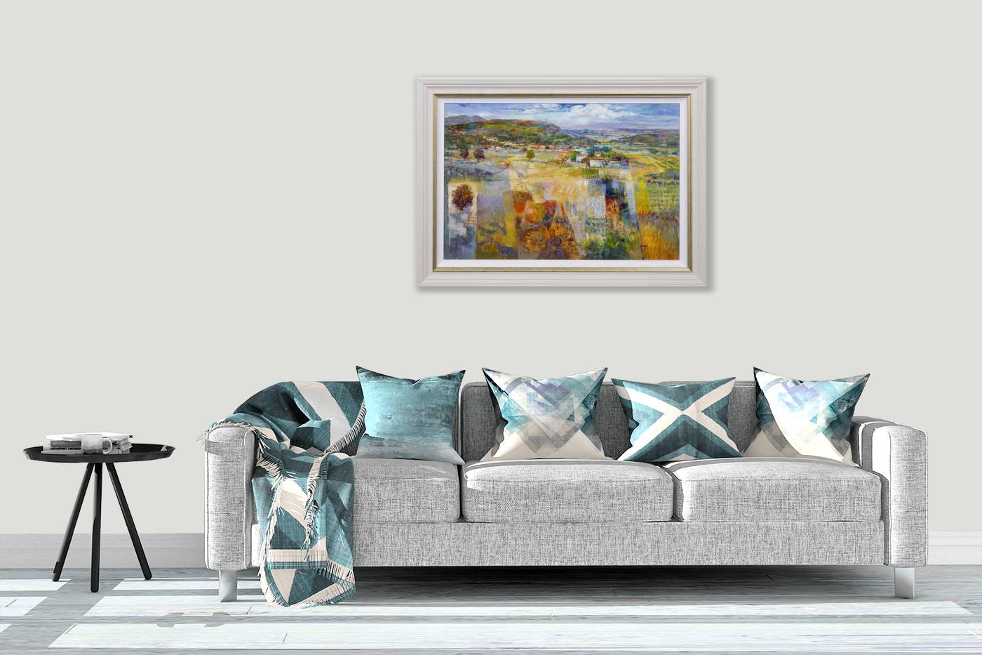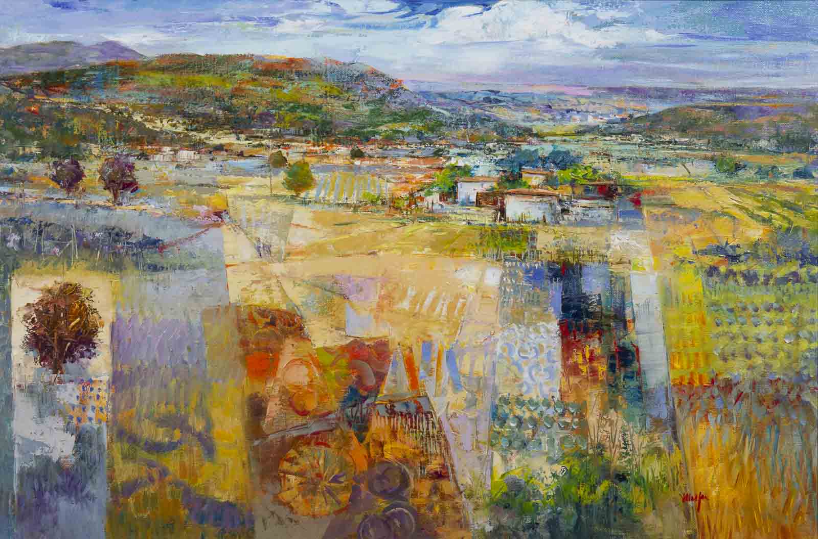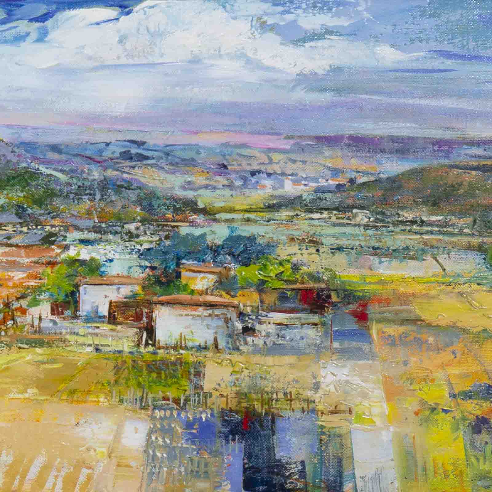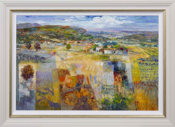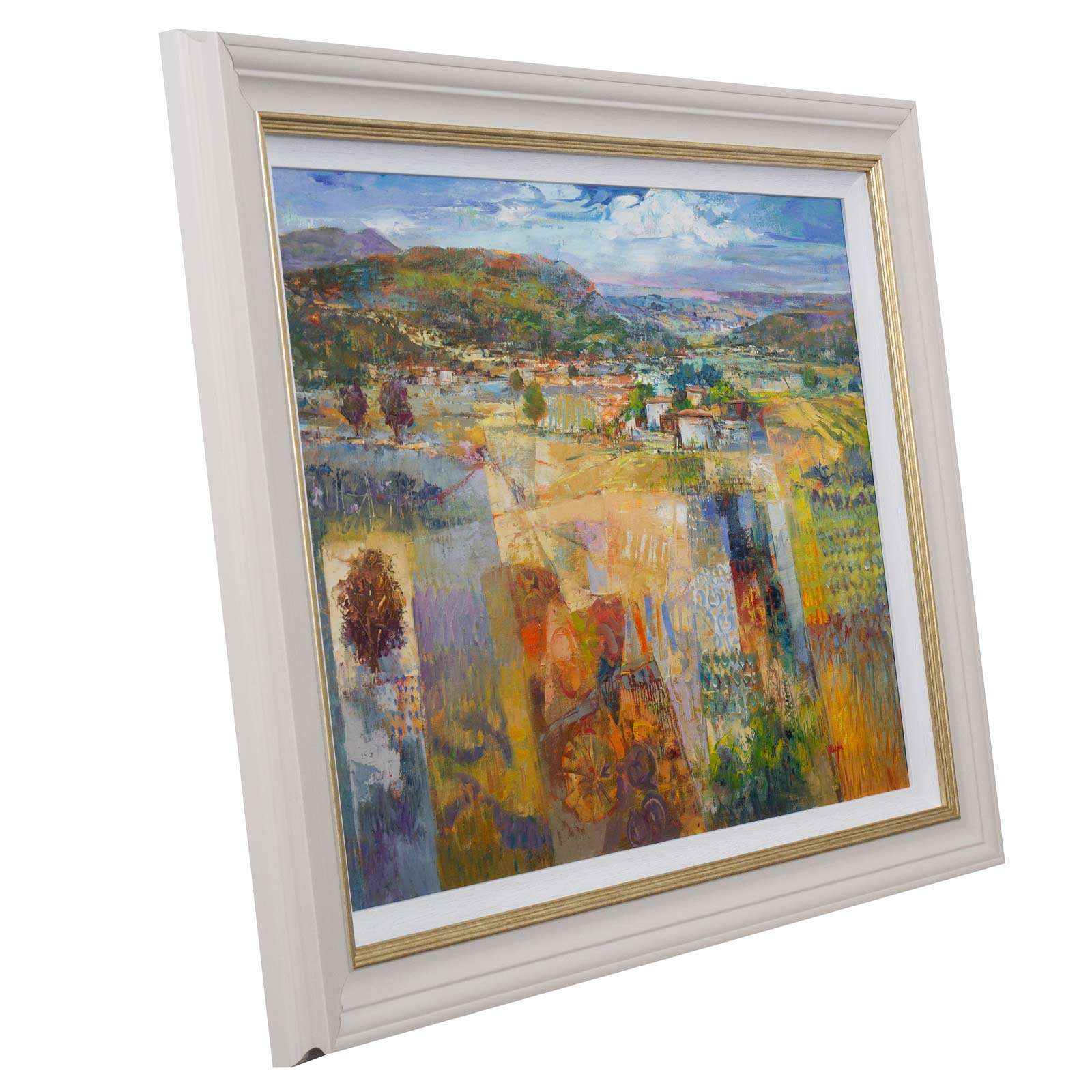 Stunning original oil painting by Italian artist Mario Malfer inspired by the Tuscan hills and surrounding countryside. Presented in a painted frame with golden trim and white slip as shown and ready to hang.