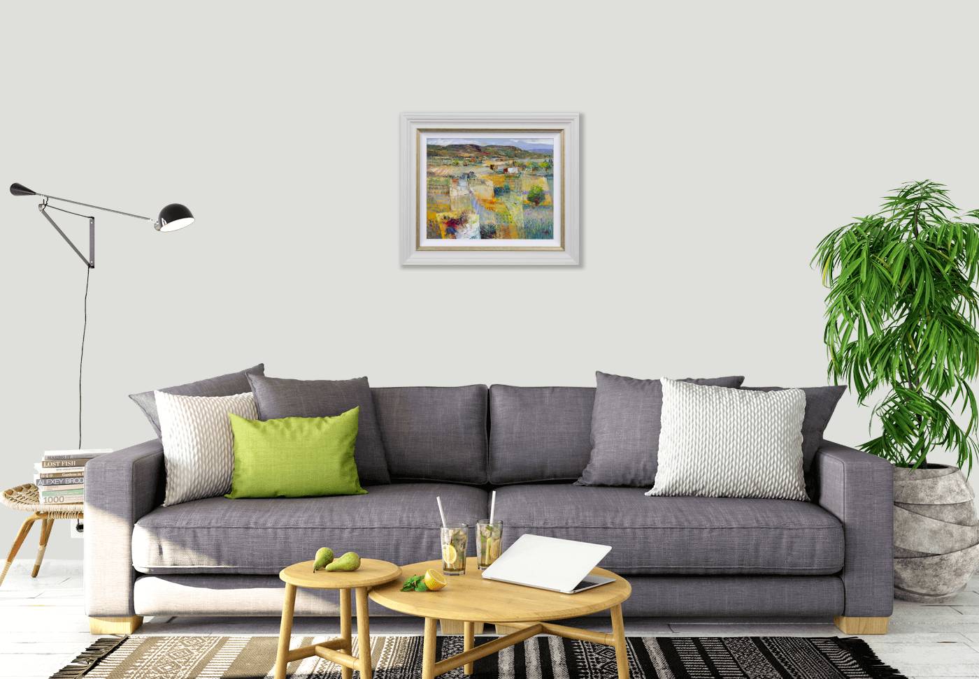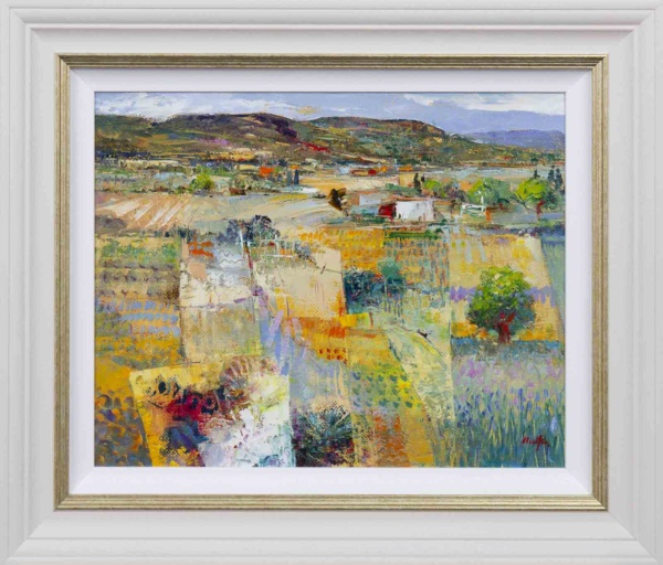 Stunning original oil painting by Italian artist Mario Malfer inspired by the Tuscan hills and surrounding countryside. Presented in a painted frame with golden trim and white slip as shown and ready to hang.