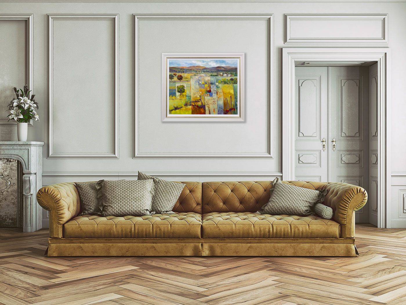 Stunning original oil painting by Italian artist Mario Malfer inspired by the Tuscan hills and surrounding countryside. Presented in a painted frame with golden trim and white slip as shown and ready to hang.