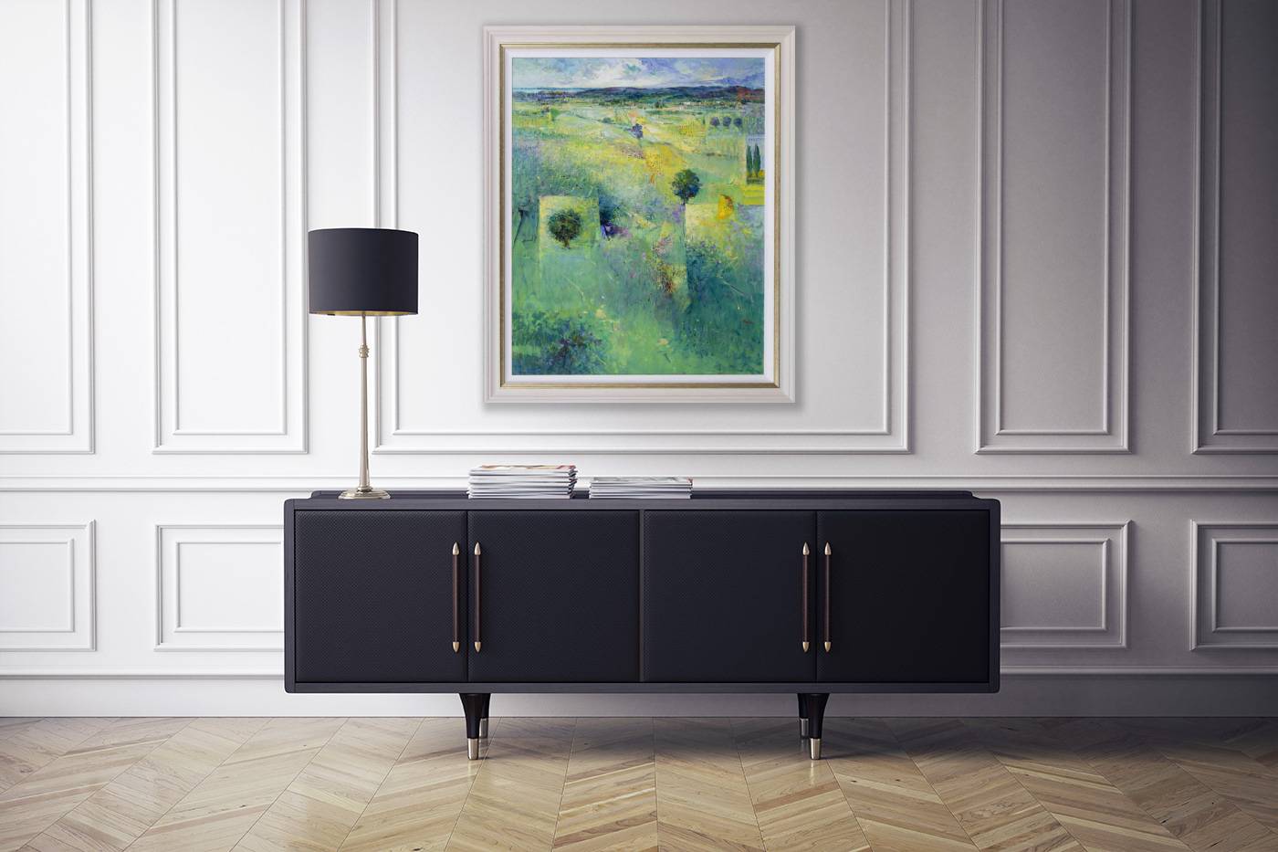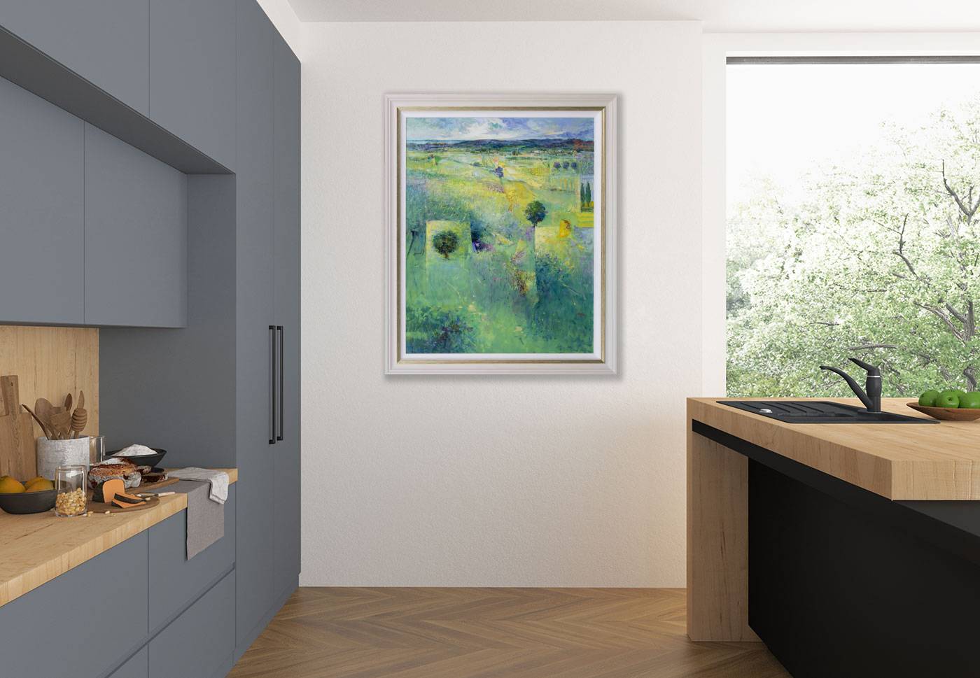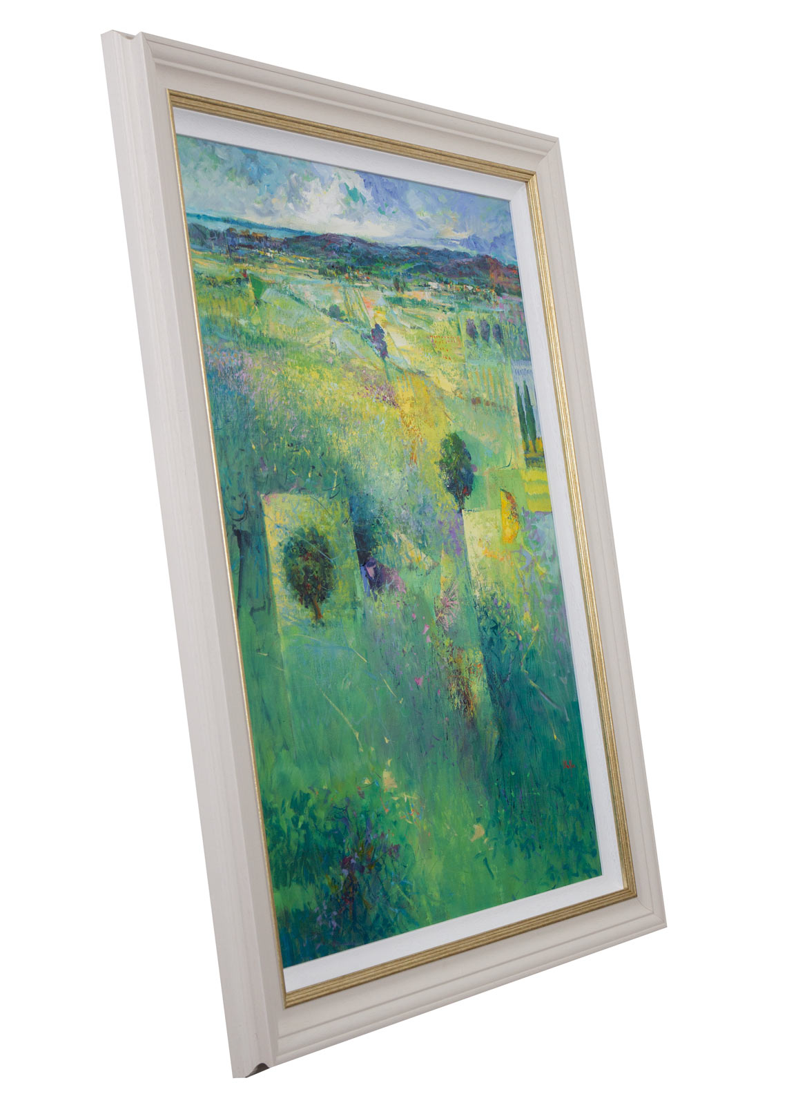 Stunning original oil painting by Italian artist Mario Malfer inspired by the Tuscan hills and surrounding countryside. Presented in a painted frame with golden trim and white slip as shown and ready to hang.