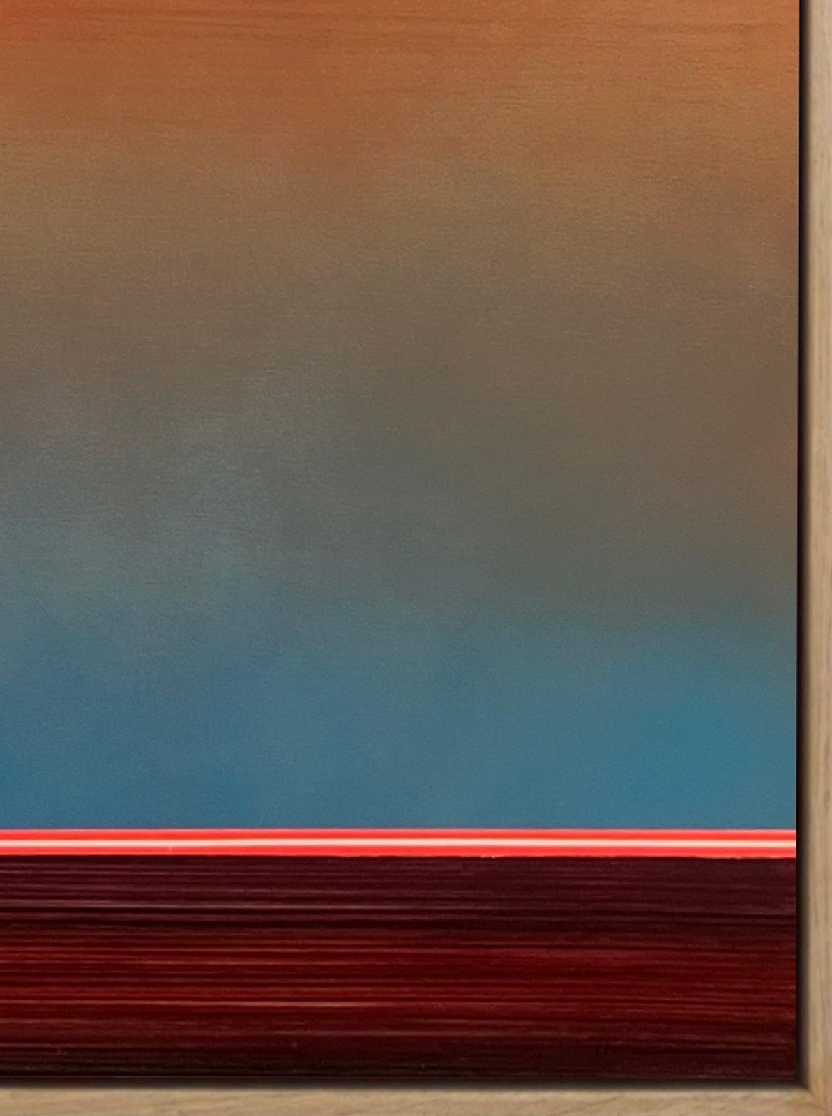 This stunning original painting combines acrylic, oil, spray paint and airbrush to create layers of depth and unique atmospheric effects. Presented in a stylish contemporary oak frame as shown and ready to hang.