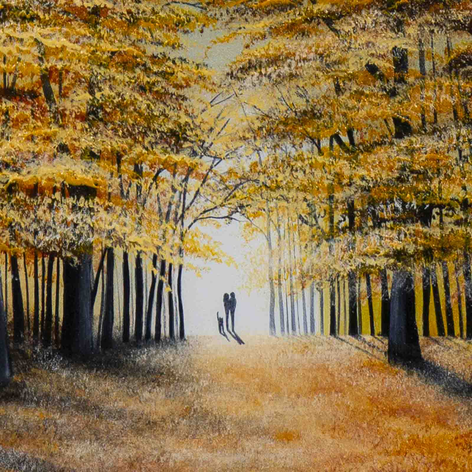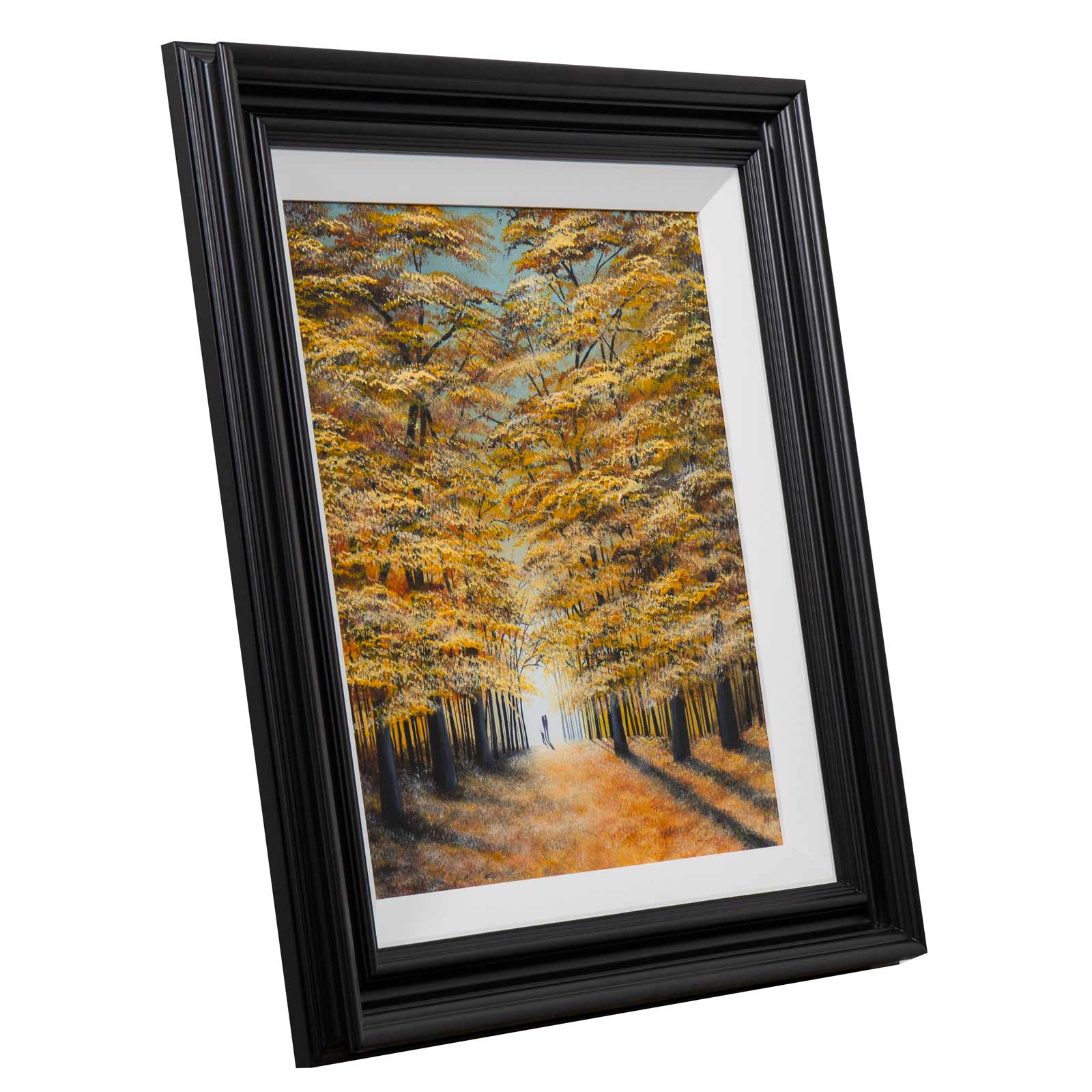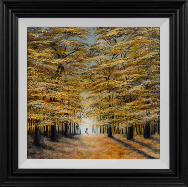 An original painting by Jay Nottingham from the woodland collection. A contemporary, tranquil painting presented framed in a white slip and matt black frame as shown.