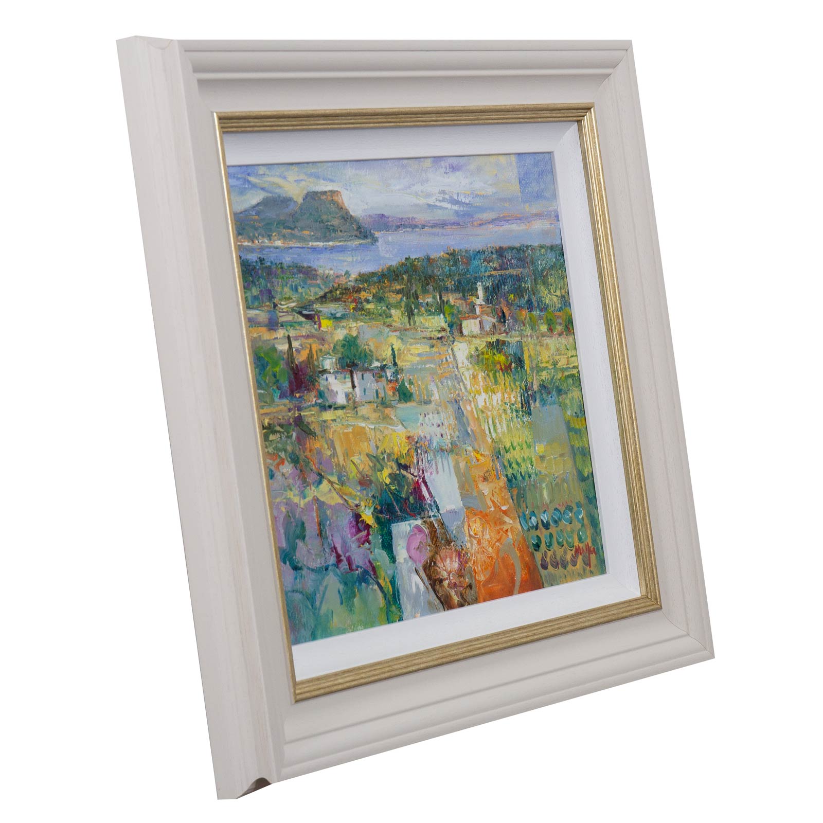Stunning original oil painting by Italian artist Mario Malfer inspired by the Tuscan hills and surrounding countryside. Presented in a painted frame with golden trim and white slip as shown and ready to hang.