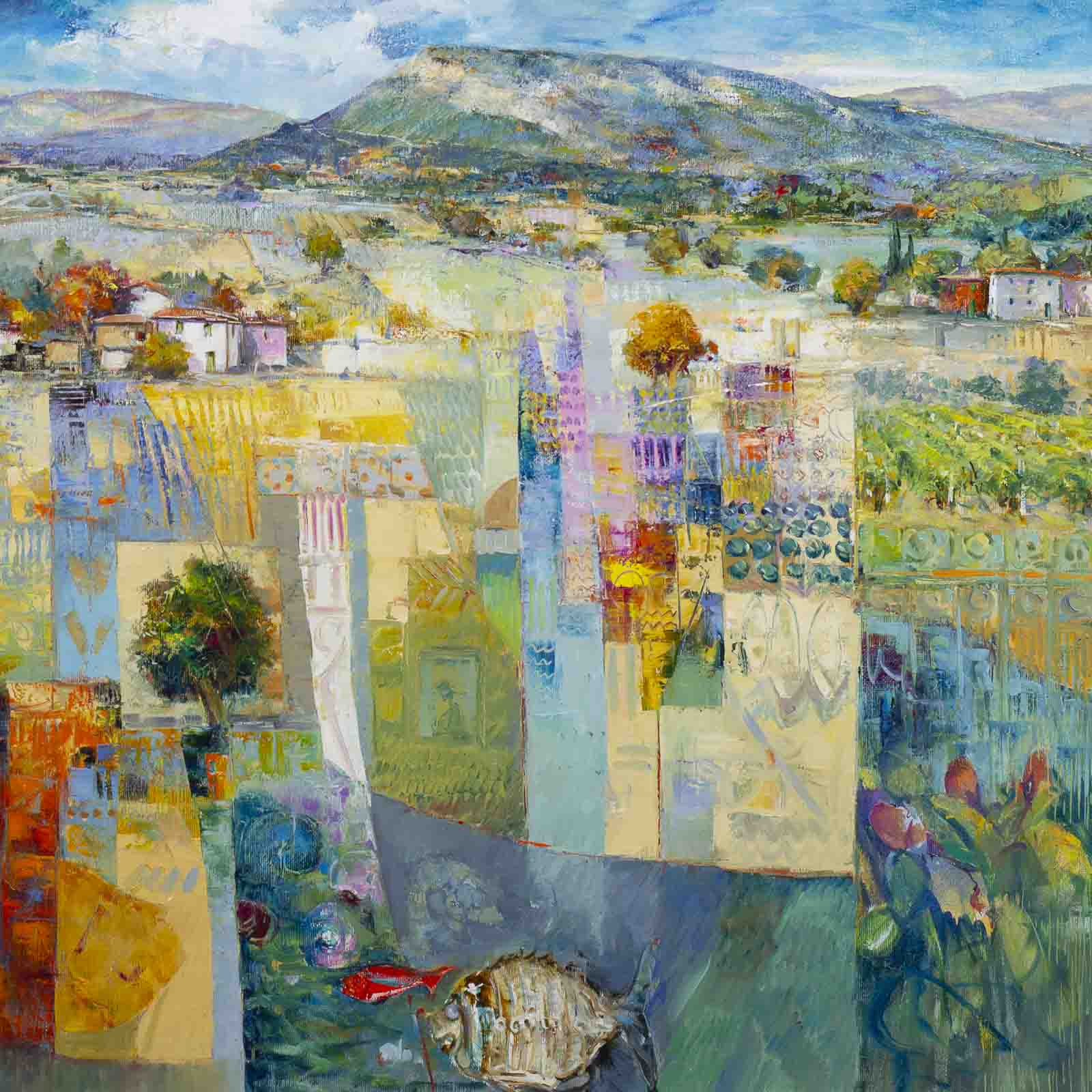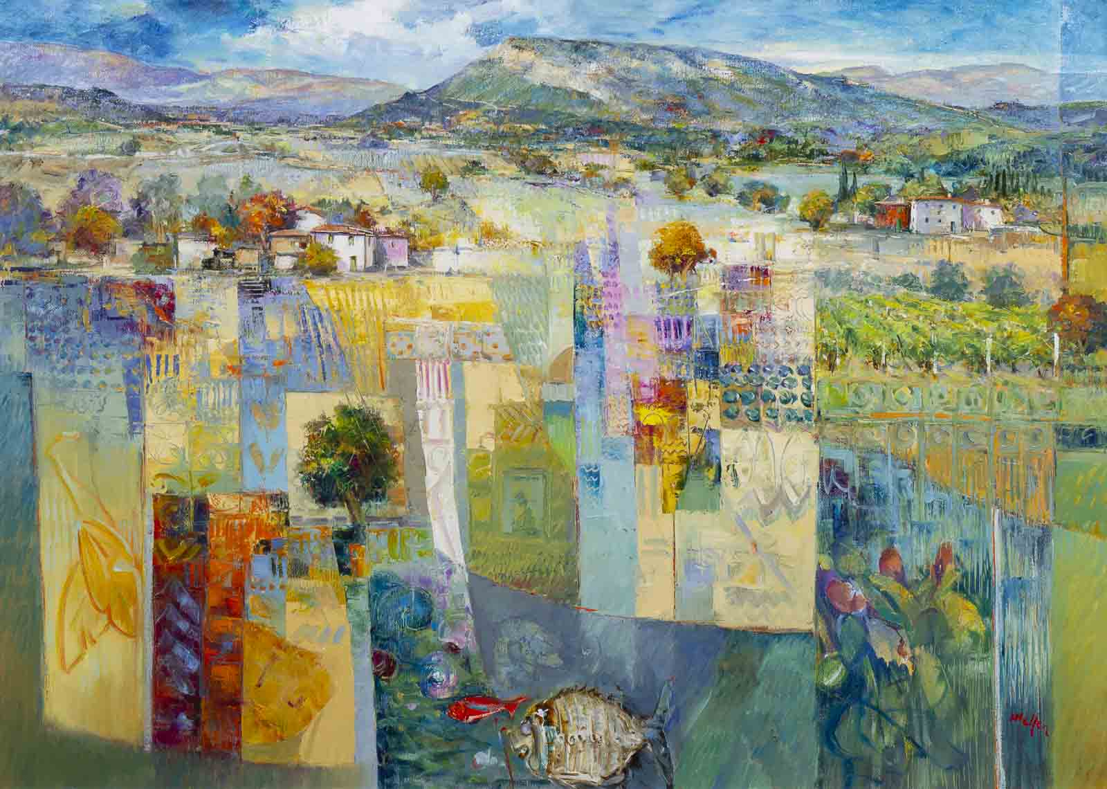 Stunning original oil painting by Italian artist Mario Malfer inspired by the Tuscan hills and surrounding countryside. Presented in a painted frame with golden trim and white slip as shown and ready to hang.
