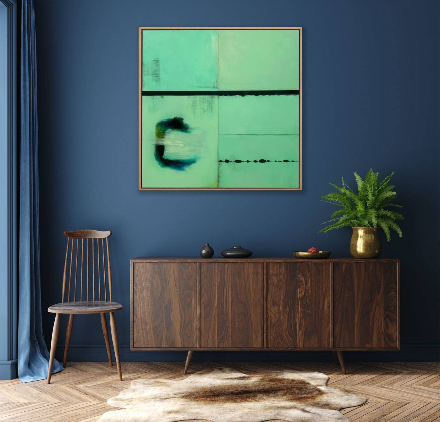 Thought provoking abstract artwork by Spanish artist De Tomàs forming part of his debut collection with Forest Gallery titled ‘Aurora’. Created on multiple wooden panels combined and joined to form one harmonised piece. Presented in a stylish contemporary oak frame as shown and ready to hang.