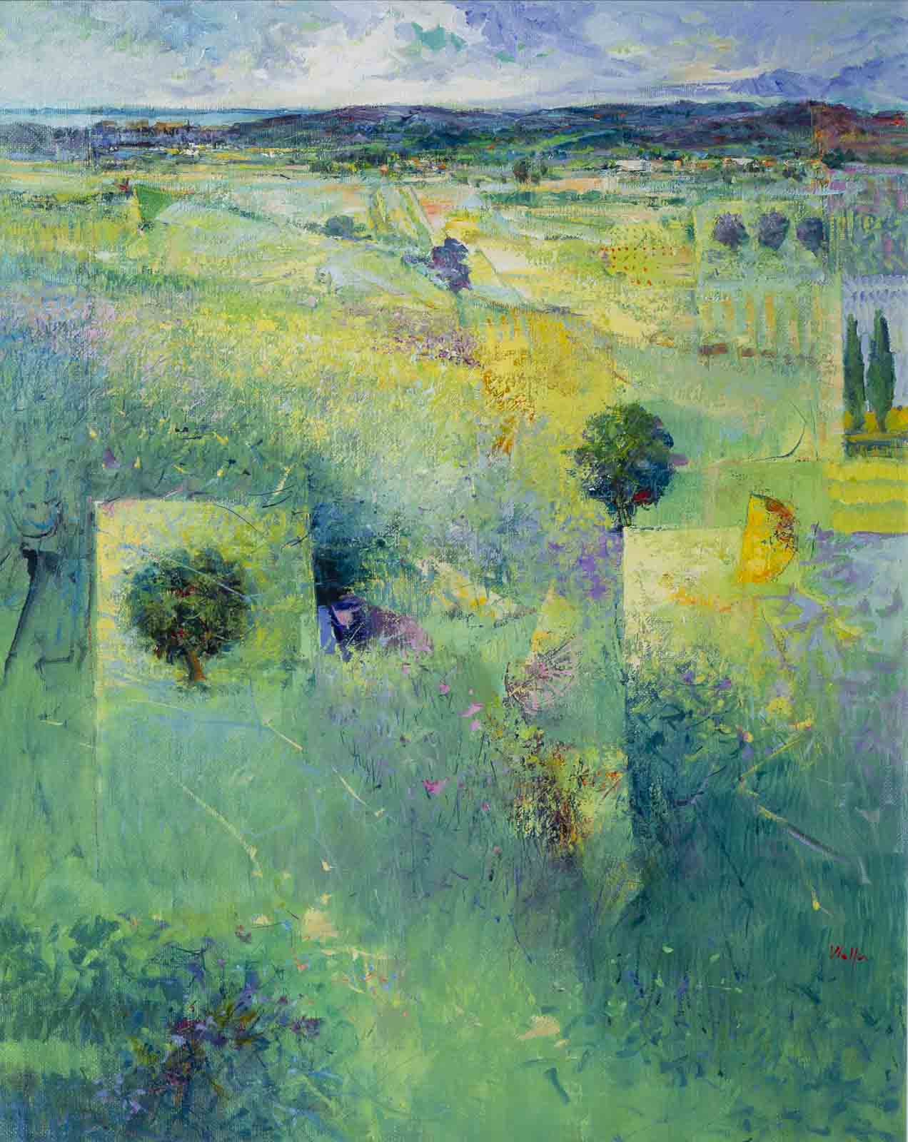 Stunning original oil painting by Italian artist Mario Malfer inspired by the Tuscan hills and surrounding countryside. Presented in a painted frame with golden trim and white slip as shown and ready to hang.
