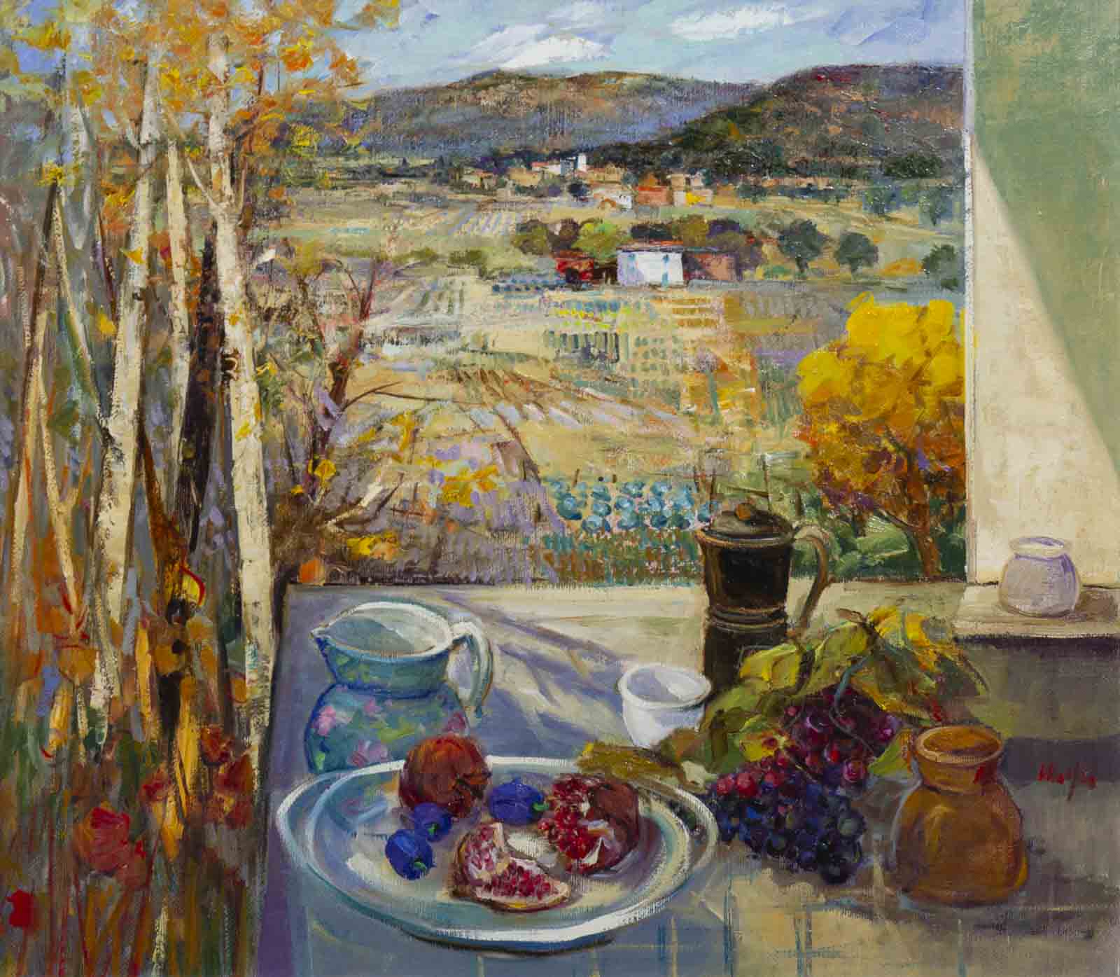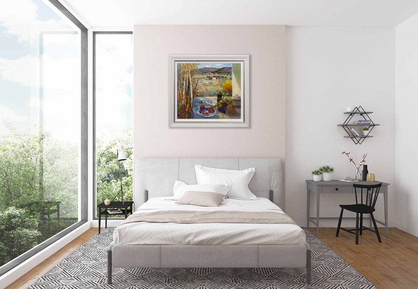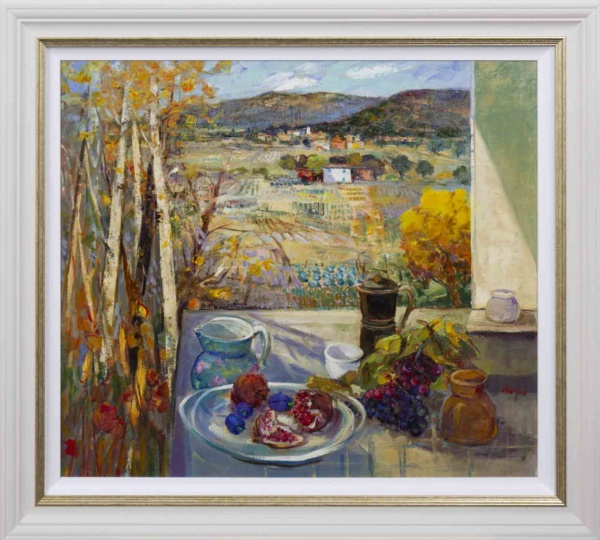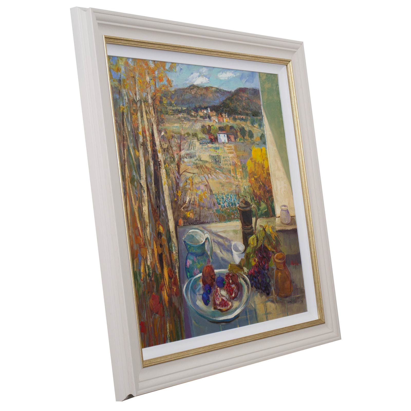Stunning original oil painting by Italian artist Mario Malfer inspired by the Tuscan hills and surrounding countryside. Presented in a painted frame with golden trim and white slip as shown and ready to hang.
