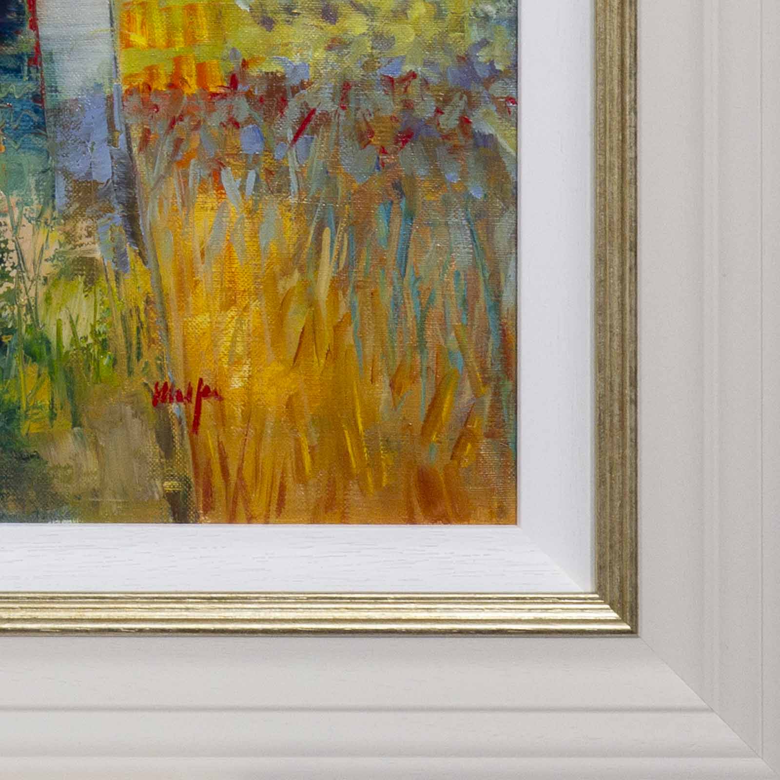 Stunning original oil painting by Italian artist Mario Malfer inspired by the Tuscan hills and surrounding countryside. Presented in a painted frame with golden trim and white slip as shown and ready to hang.